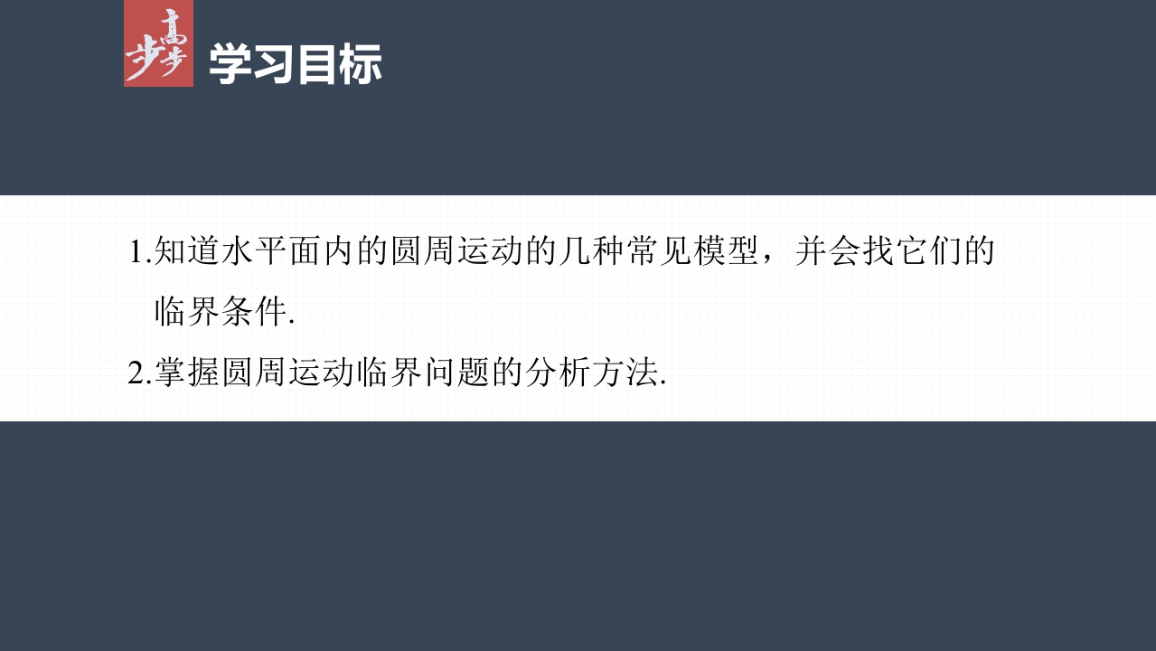 第六章专题强化 水平面内的圆周运动的临界问题348072@abc19小时前发布关注私信1.31MB44页042第六章专题强化 水平面内的圆周运动的临界问题此内容为付费资源,请付费后查看¥9¥20黄金会员免费钻石会员免费立即购买您当前未登录!建议登陆后购买,可保存购买订单付费资源 第1页 / 共44页 第2页 / 共44页 试读已结束,还剩42页,您可下载完整版后进行离线阅读 THE END初中教育小学教育高中教育 文本预览 第六章SHUIPINGMIANNEIDEYUANZHOUYUNDONG专题强化水平面内的圆周运动的临界问题探究重点提升素养/专题强化练 查看更多 收起部分 喜欢就支持一下吧收藏
