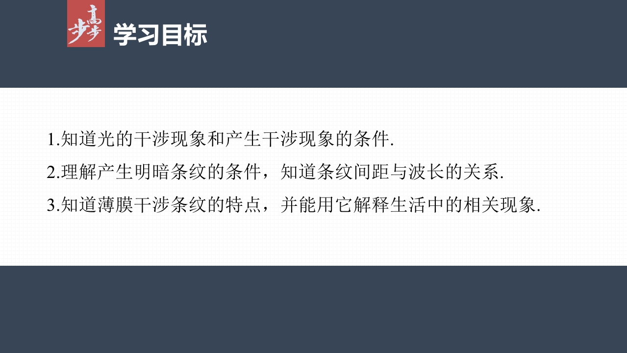 第四章3 光的干涉348072@abc8天前发布关注私信1.18MB62页028第四章3 光的干涉此内容为付费资源,请付费后查看¥9¥20黄金会员免费钻石会员免费立即购买您当前未登录!建议登陆后购买,可保存购买订单付费资源 第1页 / 共62页 第2页 / 共62页 试读已结束,还剩60页,您可下载完整版后进行离线阅读 THE END初中教育小学教育高中教育 文本预览 第四章GUANGDE3光的干涉梳理教材夯实基础/探究重点提升素养/课时对点练 查看更多 收起部分 喜欢就支持一下吧收藏