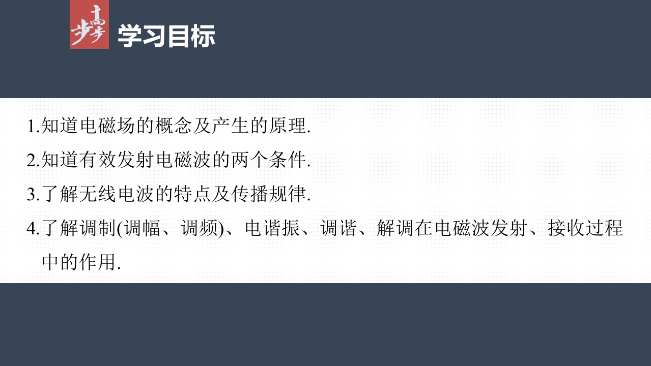 第四章 2 电磁场与电磁波 3 无线电波的发射和接收348072@abc17小时前发布关注私信1MB56页027第四章 2 电磁场与电磁波 3 无线电波的发射和接收此内容为付费资源,请付费后查看¥9¥20黄金会员免费钻石会员免费立即购买您当前未登录!建议登陆后购买,可保存购买订单付费资源 第1页 / 共56页 第2页 / 共56页 试读已结束,还剩54页,您可下载完整版后进行离线阅读 THE END初中教育小学教育高中教育 文本预览 第四章DIANCICHANGYUDIANCIBOXEJIESH○2电磁场与电磁波3无线电波的发射和接收梳理教材夯实基础/探究重点提升素养/课时对点练 查看更多 收起部分 喜欢就支持一下吧收藏