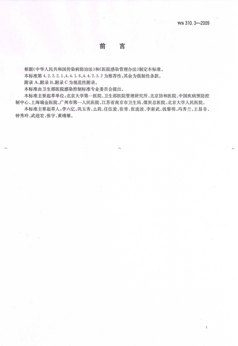 ICs11.020c05WS中华人民共和国卫生行业标准WS310.3-2009医院消毒供应中心第3部分·清洗消毒及灭菌效果监测标准Central sterile supply department(CSSD)Part III:surveillance standard for cleaning,disinfection and steriliztion2009-04-01发布2009-12-01实施中华人民共和国卫生邵发布