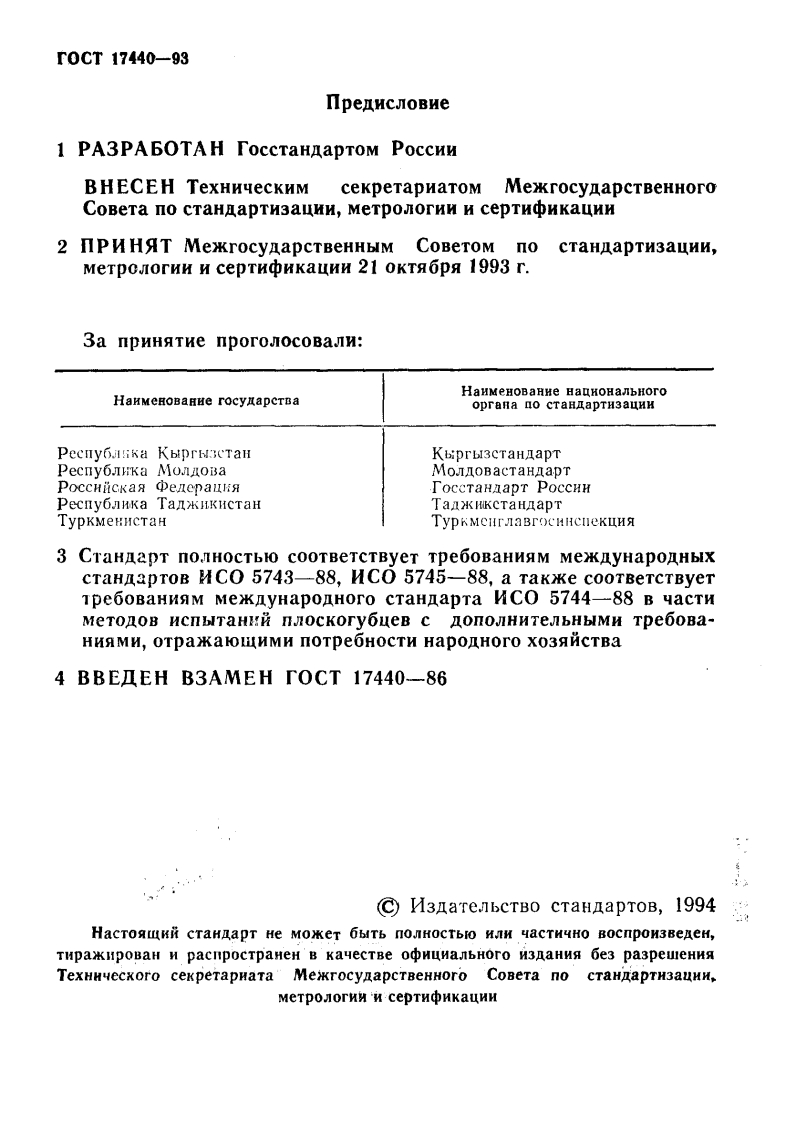 T0CT.17440-93(MC05743-88,MC05745-88)M EXKTO CyIA PCT B E HH bI A C T A H IA P TIJIOCKOTyBLIbI C nOJIyKPyTJIbIMNTyBKAMNTEXHHYECKHE yCJIOBHAM3 aHne oφHuHaJbHoe的3行些职经工主E42类MEKrOCyAPCTBEHHbIA COBETno CTAHIAPTH3AUHH,METPOJOrHH H CEPTHOHKAUHHMHHCK