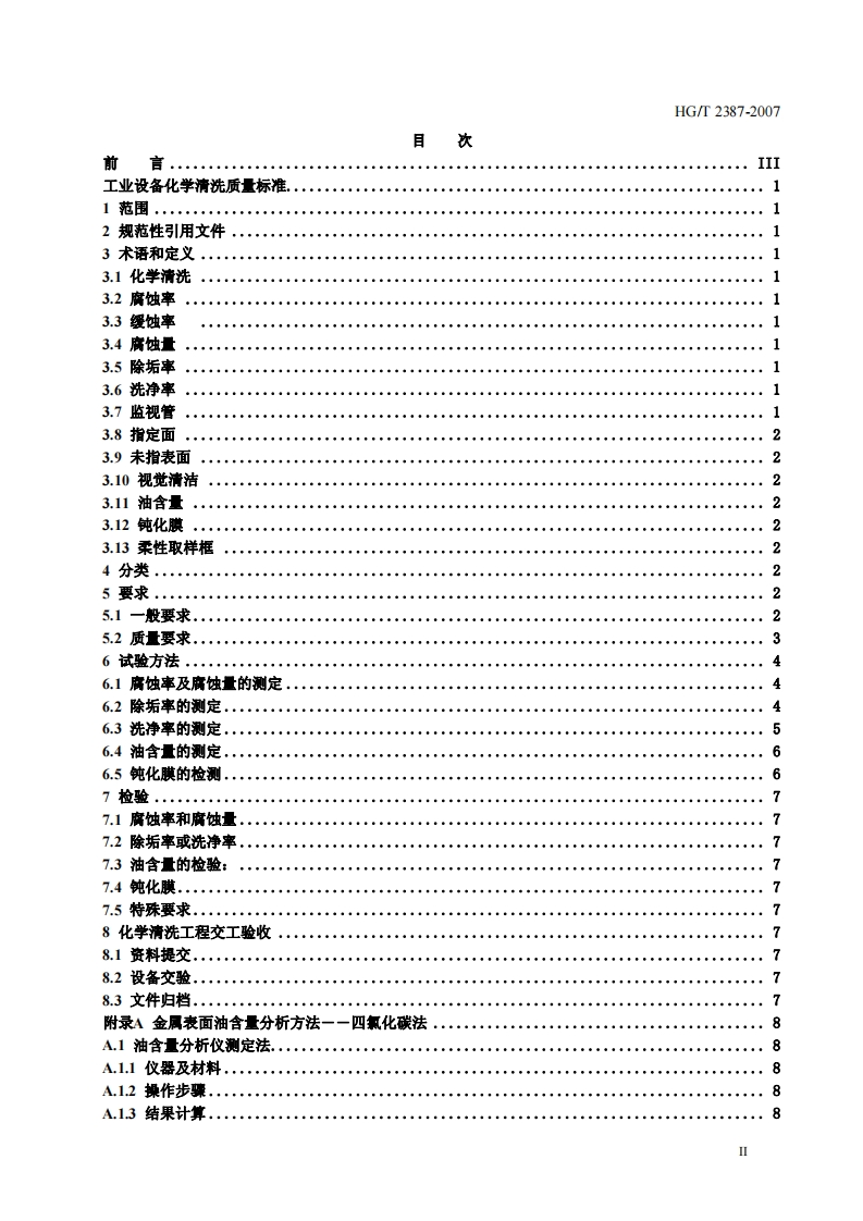 HGT2387-2007348072@abc4个月前发布关注私信0.35MB15页032HGT2387-2007此内容为付费资源,请付费后查看¥16¥23黄金会员免费钻石会员免费立即购买您当前未登录!建议登陆后购买,可保存购买订单付费资源 第1页 / 共15页 第2页 / 共15页 试读已结束,还剩13页,您可下载完整版后进行离线阅读 THE END标准规范 文本预览 HG中华人民共和国化工行业标准HG/T2387-2007代替HG/T2387一1992工业设备化学清洗质量标准Chemical cleaning quality code for industrial facility2007-09-22发布2008-04-01实施中华人民共和国国家发展和改革委员会发布 查看更多 收起部分 喜欢就支持一下吧收藏