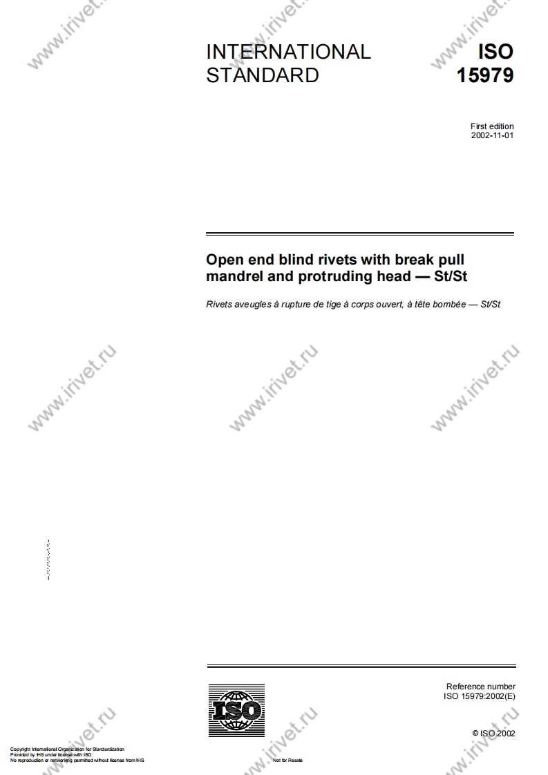 www.IriveINTERNATIONALwww.iriveiISOSTANDARD15979First edition2002.11-01Open end blind rivets with break pullmandrel and protruding head-St/StRivets aveugles a rupture de tige a corps ouvert,a tete bombee-St/Stwww.irivet.ruwww.irivet.ruwww.irivet.ruReference number1S015979:2002(E)Si ew.irivet.ruru1S02002w.iriv