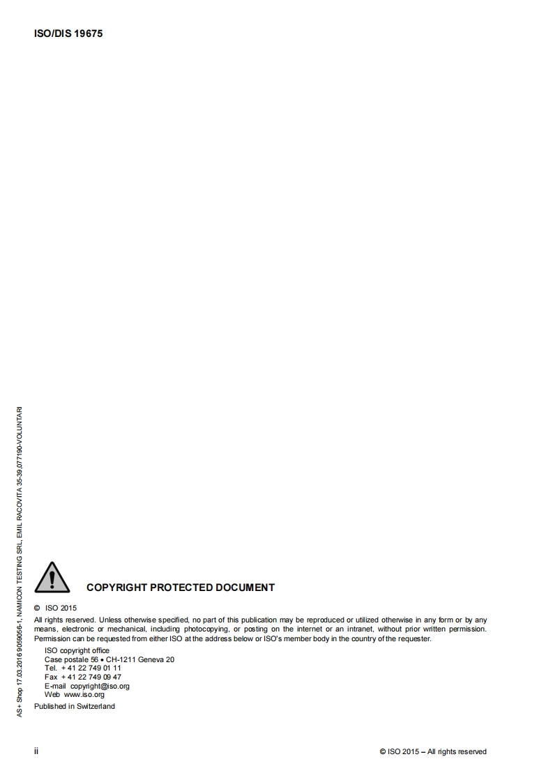 DRAFT INTERNATIONAL STANDARD ISO/DIS 19675Secretariat:IlWVoting begins onVoting terminates on2015-06-292015-09-29Non-destructive testing -Ultrasonic testing-Specificationfor a calibration block for phased array testing (PAUT)Essais non destructifs-Controle par ultrasons-Specifications relatives au bloc d'etalonnage pour latechnique multi-elements automatisesPartie #Titre de la partie1CS19.100Member bodies are requested to consult relevant national interests in ISO/TC 44/SC #beforereturning their ballot to the ISO Central Secretariat.This draft International Standard is submitted to all ISo member bodies for voting,as astandard prepared by an intemational standardizing body in accordance with CouncilResolution 42/1999.The proposer,the Intemational Institute of Welding (llW),has beenrecognized by the ISO Council as an intemational standardizing body for the purpose ofCouncil Resolution 42/1999.To expedite distribution,this document is circulated as received from the committeesecretariat.ISO Central Secretariat work of editing and text composition will be undertaken atpublication stage.THIS DOCUMENT IS A DRAFT CIRCULATED FOR COMMENT AND APPROVAL.IT IS THEREFORE SUBJECT TO CHANGE AND MAY NOT BEREFERRED TOAS AN INTERNATIONAL STANDARD UNTIL PUBLISHED AS SUCH.IN ADDITION TO THEIR EVALUATION AS BEING ACCEPTABLE FOR INDUSTRIAL,TECHNOLOGICAL,COMMERCIAL AND USER PURPOSES,DRAFT INTERNATIONAL STANDARDS MAY ON OCCASION HAVE TO BE CONSIDERED IN THE LIGHT OF THEIR POTENTIAL TO BECOMESTANDARDS TO WHICH REFERENCE MAY BE MADE IN NATIONAL REGULATIONS.RECIPIENTS OF THIS DRAFT ARE INVITED TO SUBMIT,WITH THEIR COMMENTS,NOTIFICATION OF ANY RELEVANT PATENT RIGHTS OF WHICHTHEY ARE AWARE AND TO PROVIDE SUPPORTING DOCUMENTATION.International Organization for Standardization,2015
