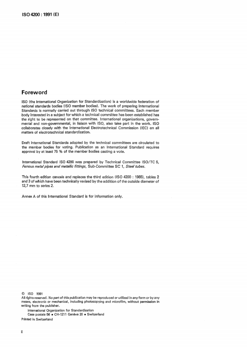 INTERNATIONALISOSTANDARD4200Fourth edition1991-02-15Plain end steel tubes,welded and seamlessGeneral tables of dimensions and masses perunit lengthTubes lisses en acier,soudds,et sans soudure -Tableaux generaux desdimensions et des masses lineiquesReference number1s04200:1991(E)