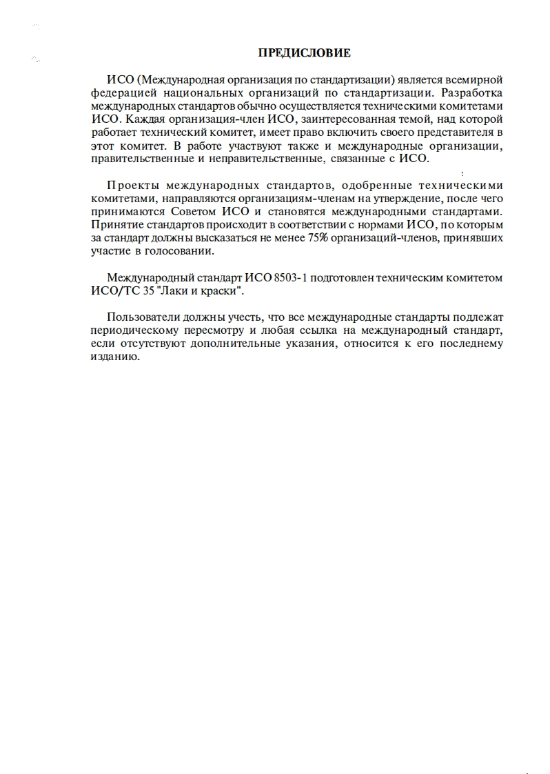 ISOMEXKIYHAPOJIHbIN CTAHIAPT.8503-1INTERNATIONAL ORGANIZATION FOR STANDARDIZATIONORGANISATION INTERNATIONALE DE NORMALISATIONMEXKIYHAPOIHA OPTAHM3ALINA IIO CTAHAAPTH3AIINNJIAKI M KPACKIIIOITOTOBKA CTAJILHON OCHOBEI IIEPEI HAHECEHNEMKPACOK N IIOJOBHEIX IIOKPLITHM.XAPAKTEPNCTNKIIIIEPOXOBATOCTN IIOBEPXHOCTN CTAJILHON OCHOBEIIIOCJIE CTPYNHON OYNCTKH.YACTB 1.TEXHNYECKHE YCJIOBHA H OIIPEEJIEHNA TAJIOHOBCPABHEHNΠIPOΦWJIEHΠOBEPXHOCTH JI OLEHKIIIOBEPXHOCTEN IIOCJIE ABPA3HBOCTPYNHON OBPABOTKH.ΠepBoe H3aHHeyK667.6;669.14;620.179.11Per.oMC08503-1.1988KoyeBbIe cJoBa:KpacKH,JaKH,OCHOBbI,CTanbHbIe npoyKTbl,HcnbrraHHA,onpeneneHne,cocToaHHe noBepxHOCTH,KprrepHn npooHJa,mepoxoBaTocTb,0Opa3ubI IA BH3yaJbHO-TaKTHJIbHOrO cpaBHeHHA.