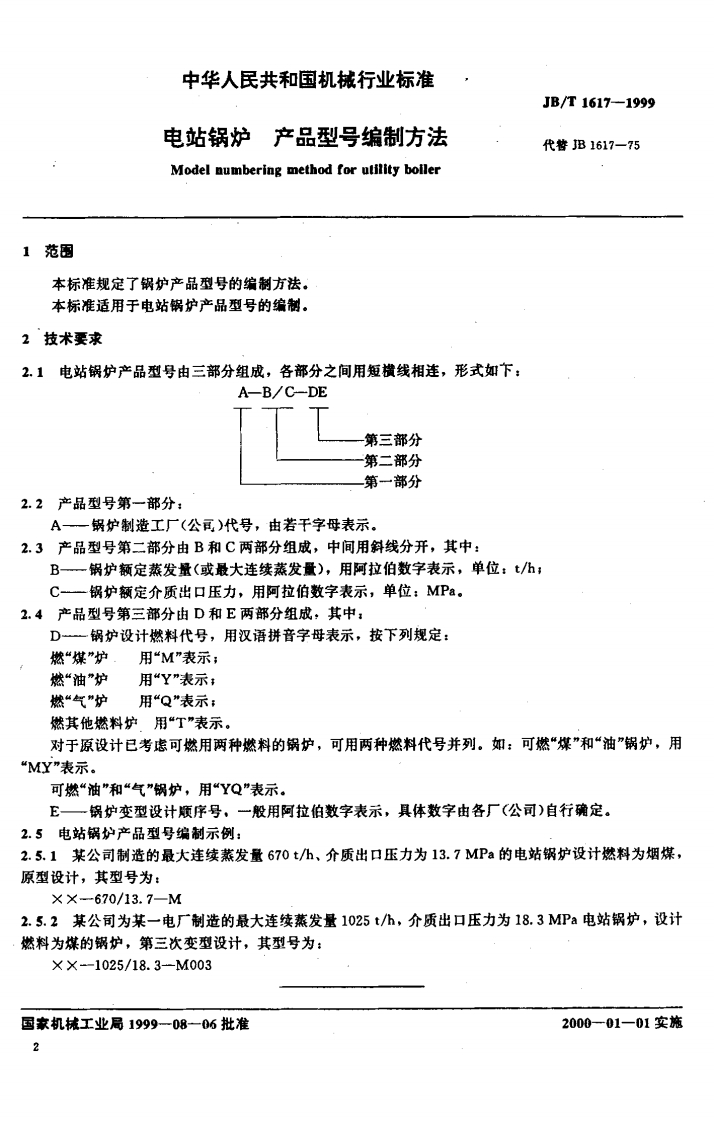 JBT1617-1999电站锅炉产品型号编制方法348072@abc2个月前发布关注私信43.26KB2页04713JBT1617-1999电站锅炉产品型号编制方法此内容为付费资源,请付费后查看¥16¥23黄金会员免费钻石会员免费立即购买您当前未登录!建议登陆后购买,可保存购买订单付费资源 第1页 / 共2页 第2页 / 共2页 已完成全部阅读,共2页 © 版权声明文章版权归作者所有,未经允许请勿转载。THE END标准规范 文本预览 JB/T1617-1999前言本标准是对JB1617一75《电站锅炉产品型号编制方法》的修订。本标准与JB1617一75的主要技术差异如下:1锅炉制造工厂(公司)的代号由二位改为若千字母表示:2锅炉蒸发量改为锅炉额定蒸发量或最大连续蒸发量;3取消了由不同工厂(公司)进行联合设计的锅炉型号编制方法。本标准自实施之日起,代替JB1617一75。本标准由全国锅炉标准化技术委员会提出并归口。本标准起草单位:上海锅炉广有限公司。本标准主要起草人:陈永歧。 查看更多 收起部分 喜欢就支持一下吧点赞13 分享QQ空间微博QQ好友海报分享复制链接收藏