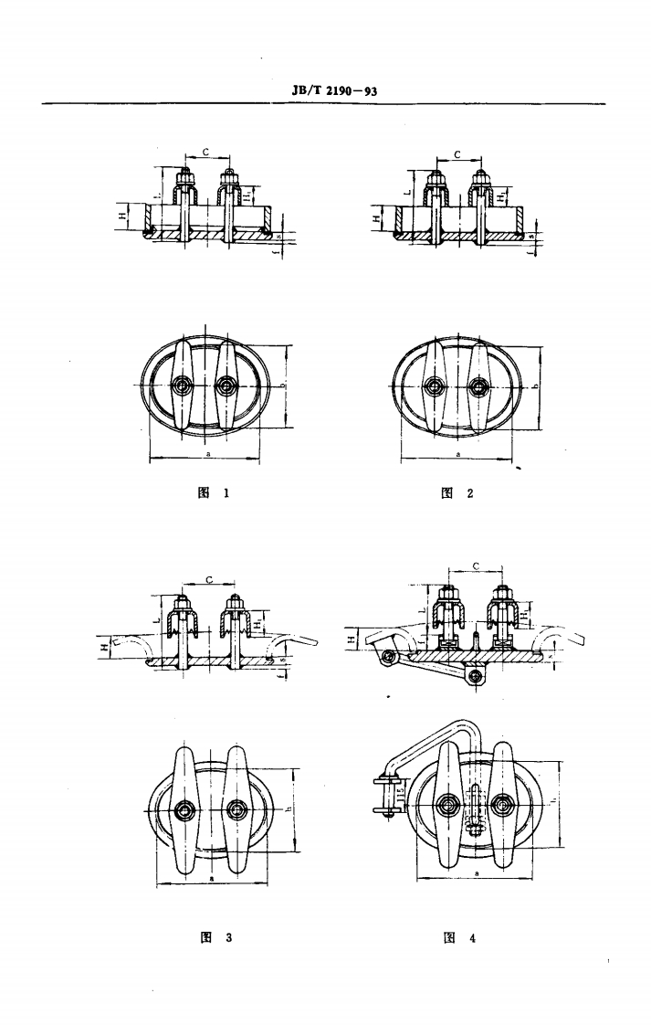 中华人民共和机械行业标准JB/T2190-93代答B2190-77锅炉人孔和头孔装置1主题内容与话用范围本标准规定了锅炉人孔装置、头孔装置的基本结构型式。本标准适用于额定蒸汽压力不大于3.82MPa的燕汽锅炉和热水锅炉上的人孔装置和头孔装置。2引用标准GB9222水管锅护受压元件强度计算JB3622锅壳式锅炉受压元件强度计算3强度计算3.1水管锅炉人孔装置和头孔装置的强度应按GB9222计算。3.2锅壳式锅炉人孔装置和头孔装置的强度应按JB3622计算。4人孔装置4.1A型一带加强避且在人孔门上焊有环箍的人孔装置结构要素尺寸,应符合表1和图1的规定。4.2B型-一带加强图且在人孔门上有凸肩的人孔装置结构要素尺寸,应符合表1和图2的规定。4.3C型一不带较链的人孔装置结构要素尺寸,应符合表1和图3的规定。4.4D型-一带铰链的人孔装置结构要素尺寸,应符合表1和图4的规定表1人孔装置结构要素尺寸mm构尺适用锅炉压力类型椭图人孔P的范丽HH螺控MXL短轴x长轴aCMPa280X38006520公M30X220150≤0.7280×380652210M30X220150≤1.25A型90300×40090652010M30X230180≤07300X40090652510M30X230180≤1.25280X38090652010M30X220150≤0.7280×38090652510M30×220150≤1.6B型300X40090652010M30×230180≤0.7300X40090652810M30×230180≤1.6300X40090952010M30X260180≤0.7300X40090%2810M30X260180≤1.6300X4001003633M30×200180≤2.5D型300×425110955036M36X210200≤3.82注:⑨人孔门(楚)幂度$系按20g材料计算,当材料变动时S应另行计算:②当取用的材料厚度小于本表规定值时,应进行强度校核③P系指蒸汽锅炉的领定燕汽压力或热水锅炉的允许工作压力,机械工业部1993-06一01批准1994-01一01实施