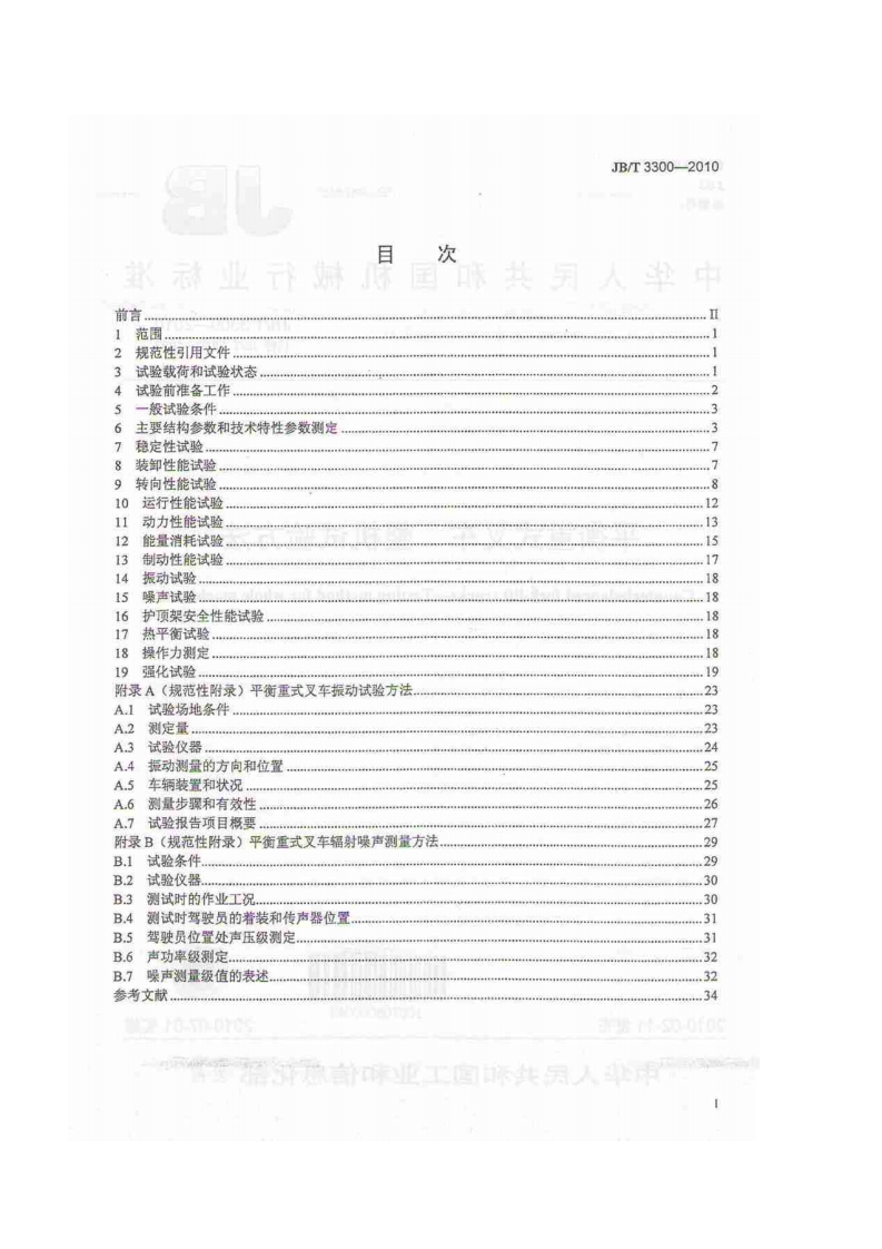 JBT3300-2010348072@abc4个月前发布关注私信3.06MB38页024JBT3300-2010此内容为付费资源,请付费后查看¥16¥23黄金会员免费钻石会员免费立即购买您当前未登录!建议登陆后购买,可保存购买订单付费资源 第1页 / 共38页 第2页 / 共38页 试读已结束,还剩36页,您可下载完整版后进行离线阅读 THE END标准规范 文本预览 1Cs53.060J83备案号:JB中华人民共和国机械行业标准JB/T3300-2010代替JB/T3300一1992平衡重式叉车整机试验方法Counterbalanced fork-lift trucks-Testing method for whole machines1007060000432010-02-11发布2010-07-01实施中华人民共和国工业和信息化部发布 查看更多 收起部分 喜欢就支持一下吧收藏