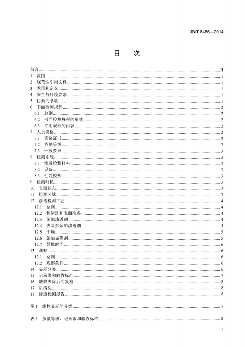 JBT-8466-2014-锻钢件渗透检测348072@abc4个月前发布关注私信7.87MB11页022JBT-8466-2014-锻钢件渗透检测此内容为付费资源,请付费后查看¥16¥23黄金会员免费钻石会员免费立即购买您当前未登录!建议登陆后购买,可保存购买订单付费资源 第1页 / 共11页 第2页 / 共11页 试读已结束,还剩9页,您可下载完整版后进行离线阅读 THE END标准规范 文本预览 ICs77.140.85J32备案号:47210一2014中华人民共和国机械行业标准JB/T8466-2014代替JB/T8466一1996锻钢件渗透检测Penetrant testing for steel forgings2014-07-09发布2014-11-01实施中华人民共和国工业和信息化部发布 查看更多 收起部分 喜欢就支持一下吧收藏