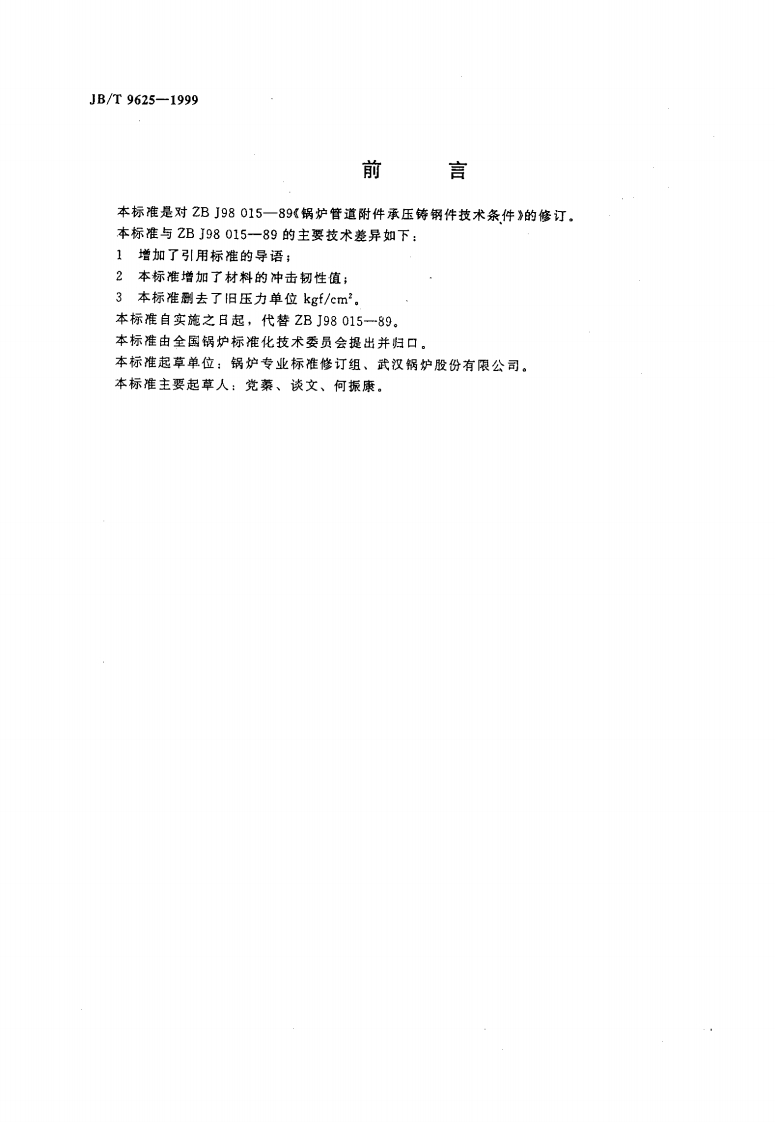 JBT9625-1999锅炉管道附件承压铸钢件技术条件348072@abc4个月前发布关注私信0.14MB6页028JBT9625-1999锅炉管道附件承压铸钢件技术条件此内容为付费资源,请付费后查看¥16¥23黄金会员免费钻石会员免费立即购买您当前未登录!建议登陆后购买,可保存购买订单付费资源 第1页 / 共6页 第2页 / 共6页 试读已结束,还剩4页,您可下载完整版后进行离线阅读 THE END标准规范 文本预览 JB中华人民共和国机械行业标准JB/T9625-1999锅炉管道附件承压铸钢件:技术条件Specification for pressure retaining casting of boiler pipe fittings1999-08-06发布2000-01-01实施国家机械工业局发布 查看更多 收起部分 喜欢就支持一下吧收藏