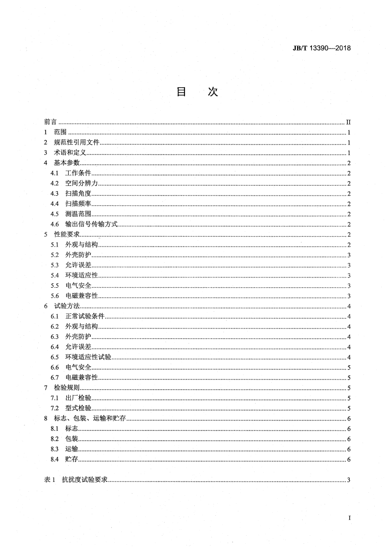 JB-T-13390-2018红外线扫描测温仪348072@abc4个月前发布关注私信1MB10页025JB-T-13390-2018红外线扫描测温仪此内容为付费资源,请付费后查看¥16¥23黄金会员免费钻石会员免费立即购买您当前未登录!建议登陆后购买,可保存购买订单付费资源 第1页 / 共10页 第2页 / 共10页 试读已结束,还剩8页,您可下载完整版后进行离线阅读 THE END标准规范 文本预览 ICs17.200.20N11备案号:63917一2018JB中华人民共和国机械行业标准JB/T13390-2018红外线扫描测温仪Infrared line scanning thermometer2018-04-30发布2018-12-01实施中华人民共和国工业和信息化部发布 查看更多 收起部分 喜欢就支持一下吧收藏