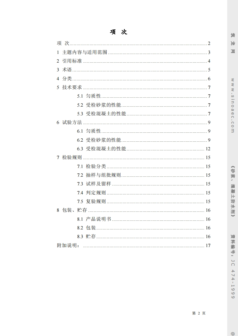 JC474-1999砂浆混凝土防水剂348072@abc6个月前发布关注私信0.29MB17页032JC474-1999砂浆混凝土防水剂此内容为付费资源,请付费后查看¥16¥23黄金会员免费钻石会员免费立即购买您当前未登录!建议登陆后购买,可保存购买订单付费资源 第1页 / 共17页 第2页 / 共17页 试读已结束,还剩15页,您可下载完整版后进行离线阅读 THE END标准规范 文本预览 中华人民共和国建材行业标准JC474-1999砂浆、混凝土防水剂www .s in o a e c.co m2000一01一01实施烧量装点店:UC474-1009国家建筑材料工业局发布第1页 查看更多 收起部分 喜欢就支持一下吧收藏