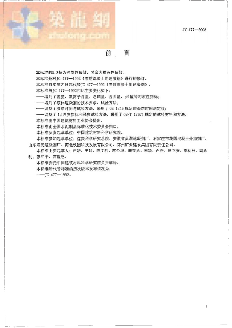 JC477-2005喷射混凝土用速凝剂348072@abc4个月前发布关注私信1.01MB8页023JC477-2005喷射混凝土用速凝剂此内容为付费资源,请付费后查看¥16¥23黄金会员免费钻石会员免费立即购买您当前未登录!建议登陆后购买,可保存购买订单付费资源 第1页 / 共8页 第2页 / 共8页 试读已结束,还剩6页,您可下载完整版后进行离线阅读 THE END标准规范 文本预览 1Cs91.100,30第范细Q12备案号:15581一2005JC中华人民共和国建材行业标准JC477-2005代替JC477-1992喷射混凝土用速凝剂Flash setting admixtures for shotcrete2005-04-11发布2005-08-01实施中华人民共和国国家发展和改革委员会发布 查看更多 收起部分 喜欢就支持一下吧收藏