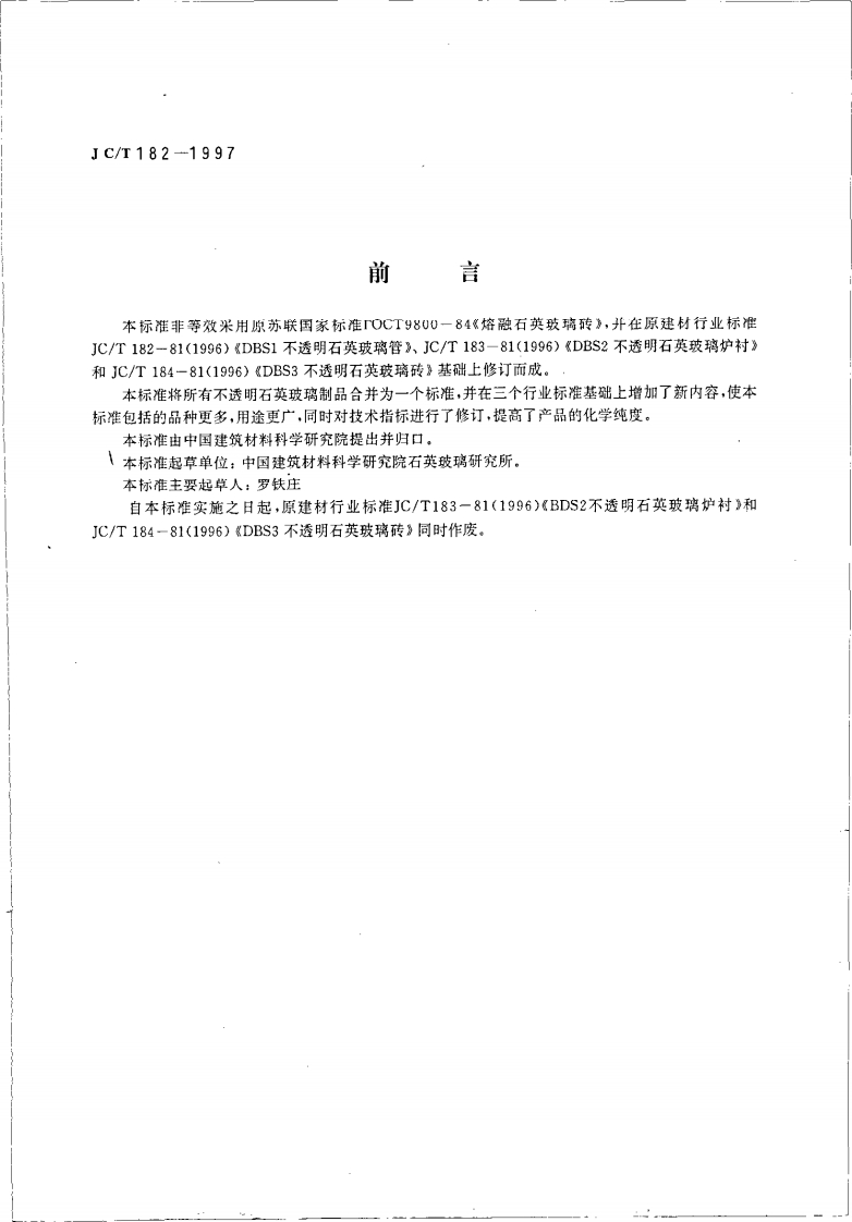 JCT182-1997不透明石英玻璃制品348072@abc4个月前发布关注私信0.24MB9页049JCT182-1997不透明石英玻璃制品此内容为付费资源,请付费后查看¥16¥23黄金会员免费钻石会员免费立即购买您当前未登录!建议登陆后购买,可保存购买订单付费资源 第1页 / 共9页 第2页 / 共9页 试读已结束,还剩7页,您可下载完整版后进行离线阅读 THE END标准规范 文本预览 G中华人民共和国建材行业标准JC/T182-1997不透明石英玻璃制品Opaque quartz glass production1997-08-22发布1998-01-01实施国家建筑材料工业局发布 查看更多 收起部分 喜欢就支持一下吧收藏