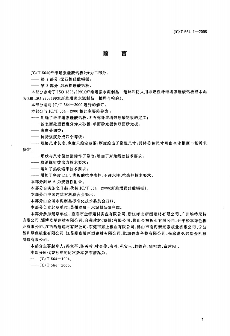ICS91.100.40Q14备案号:24216-2008JC中华人民共和国建材行业标准JC/T564.1-2008代替JC/T564一2000纤维增强硅酸钙板第1部分:无石棉硅酸钙板Fiber reinforced calcium silicate boardsPart 1:Non-Asbestos calcium silicate boards2008-06-16发布2008-12-01实施中华人民共和国国家发展和改革委员会发布