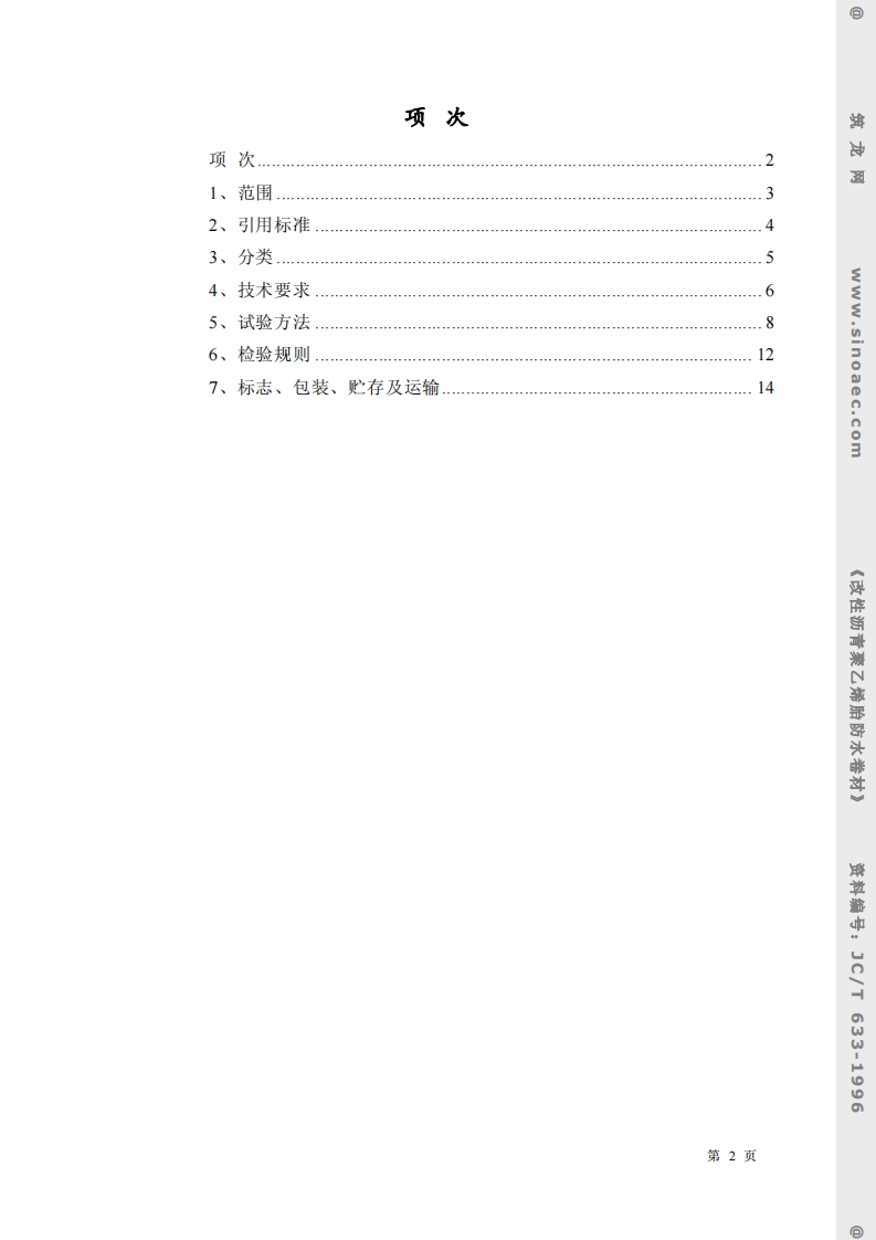 JCT633-1996改性沥青聚乙烯胎防水卷材348072@abc4个月前发布关注私信0.19MB14页026JCT633-1996改性沥青聚乙烯胎防水卷材此内容为付费资源,请付费后查看¥16¥23黄金会员免费钻石会员免费立即购买您当前未登录!建议登陆后购买,可保存购买订单付费资源 第1页 / 共14页 第2页 / 共14页 试读已结束,还剩12页,您可下载完整版后进行离线阅读 THE END标准规范 文本预览 ⑧中华人民共和国建材行业标准JC/T633-1996改性沥青聚乙烯胎防水卷材www.sinoaec.com实施烧粮精5:2C/7633-1906发布第1页 查看更多 收起部分 喜欢就支持一下吧收藏