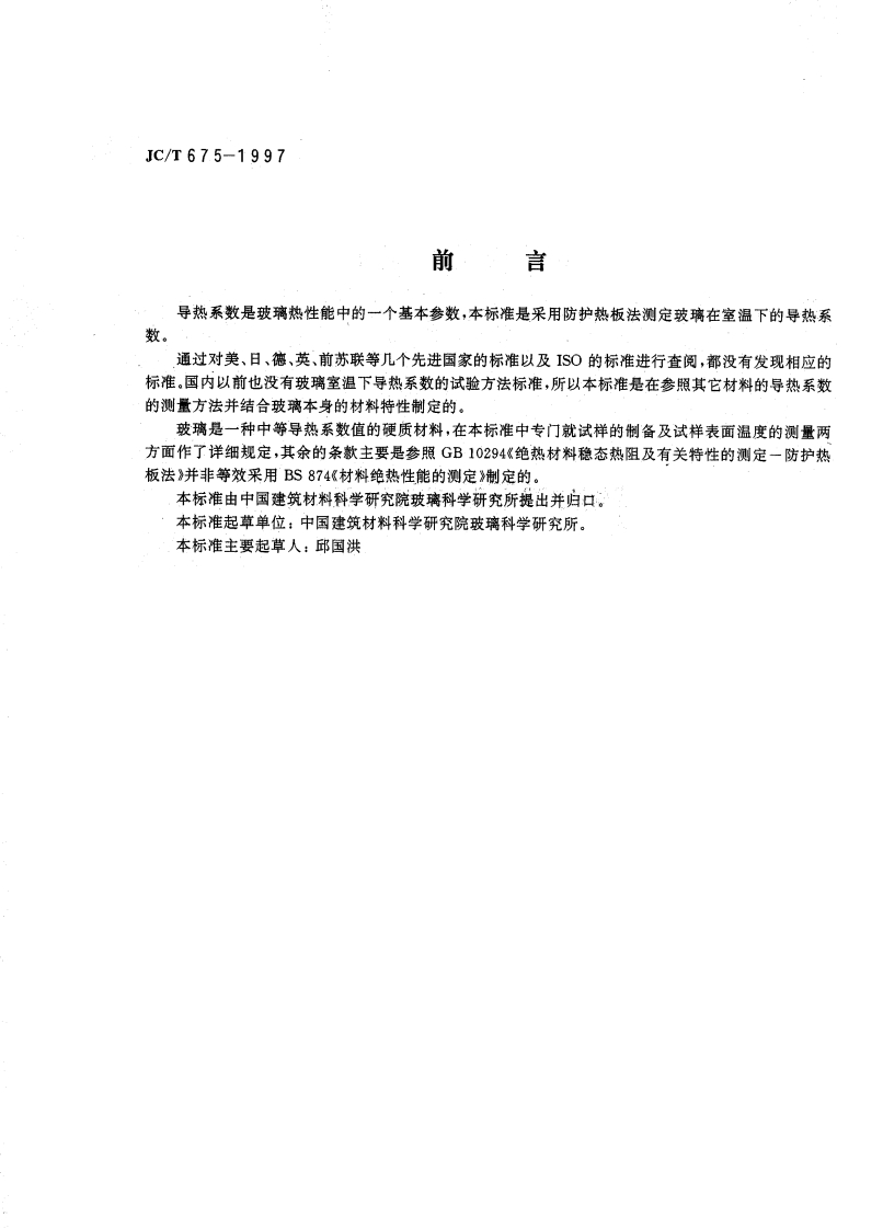 JCT675-1997玻璃导热系数试验方法348072@abc4个月前发布关注私信0.29MB6页045JCT675-1997玻璃导热系数试验方法此内容为付费资源,请付费后查看¥16¥23黄金会员免费钻石会员免费立即购买您当前未登录!建议登陆后购买,可保存购买订单付费资源 第1页 / 共6页 第2页 / 共6页 试读已结束,还剩4页,您可下载完整版后进行离线阅读 THE END标准规范 文本预览 G中华人民共和国建材行业标准JC/T675-1997玻璃导热系数试验方法Glass-The method for measuringthermal conductivity1997-08-22发布1998-01-01实施国家建筑材料工业局发布 查看更多 收起部分 喜欢就支持一下吧收藏