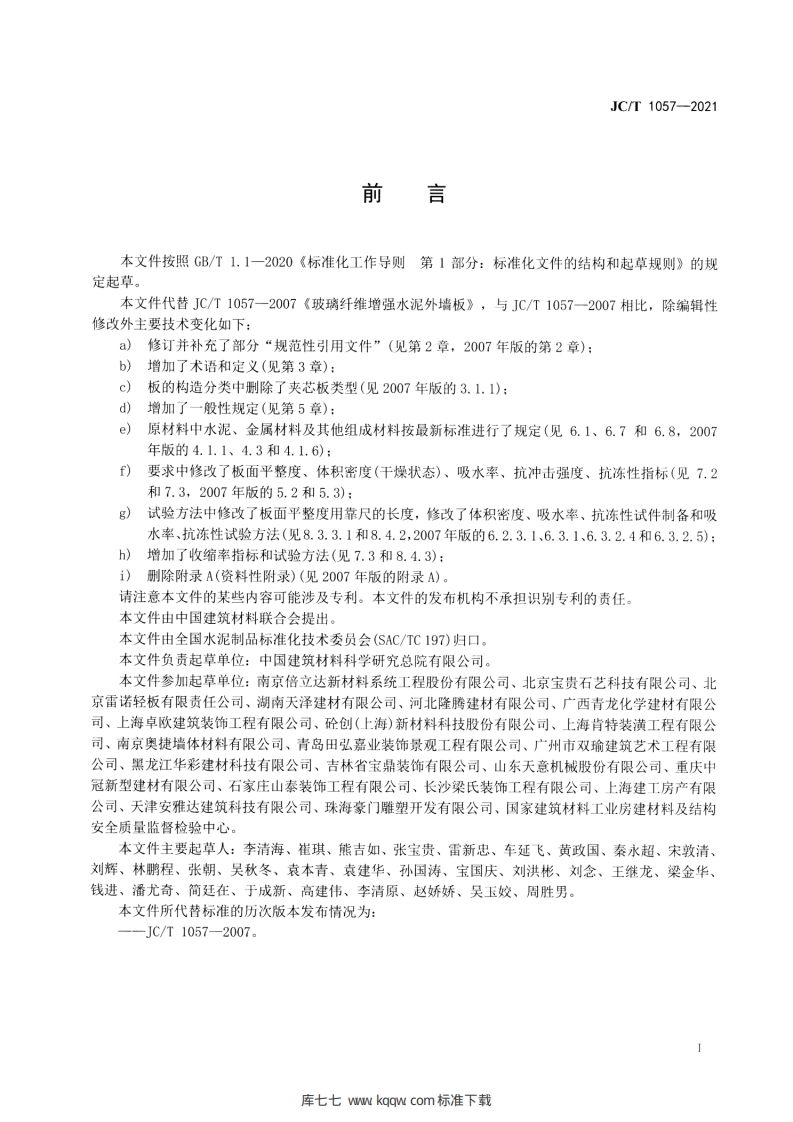 JCT1057-2021-玻璃纤维增强水泥GRC墙板-01-05348072@abc4个月前发布关注私信0.93MB5页022JCT1057-2021-玻璃纤维增强水泥GRC墙板-01-05此内容为付费资源,请付费后查看¥16¥23黄金会员免费钻石会员免费立即购买您当前未登录!建议登陆后购买,可保存购买订单付费资源 第1页 / 共5页 第2页 / 共5页 试读已结束,还剩3页,您可下载完整版后进行离线阅读 THE END标准规范 文本预览 ICS91.100.40CCS Q 14JC中华人民共和国建材行业标准JC/T1057一2021代替JC/T1057-2007玻璃纤维增强水泥(GRC)外墙板Glassfibre reinforced cement panel for exterior wall2021-03-05发布2021-07-01实施中华人民共和国工业和信息化部发布 查看更多 收起部分 喜欢就支持一下吧收藏