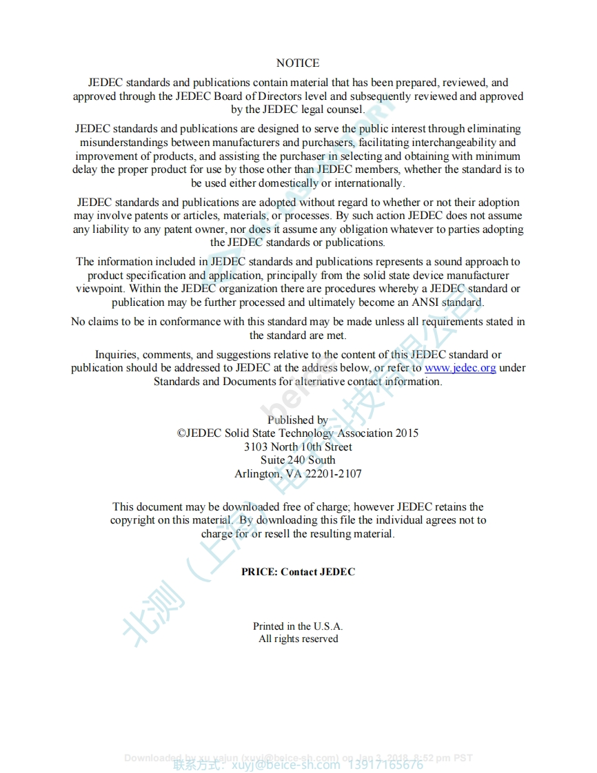 JEDECABORATORYSTANDARDAccelerated Moisture ResistanceUnbiased HAST科有限公司JESD22-A118B(Revision of JESD22-A118A,March 2011)JULY 2015JEDEC SOLID STATE TECHNOLOGY ASSOCIATIONJEDECDownioa联紫方t6Be168h.0mT391716567652 om PST