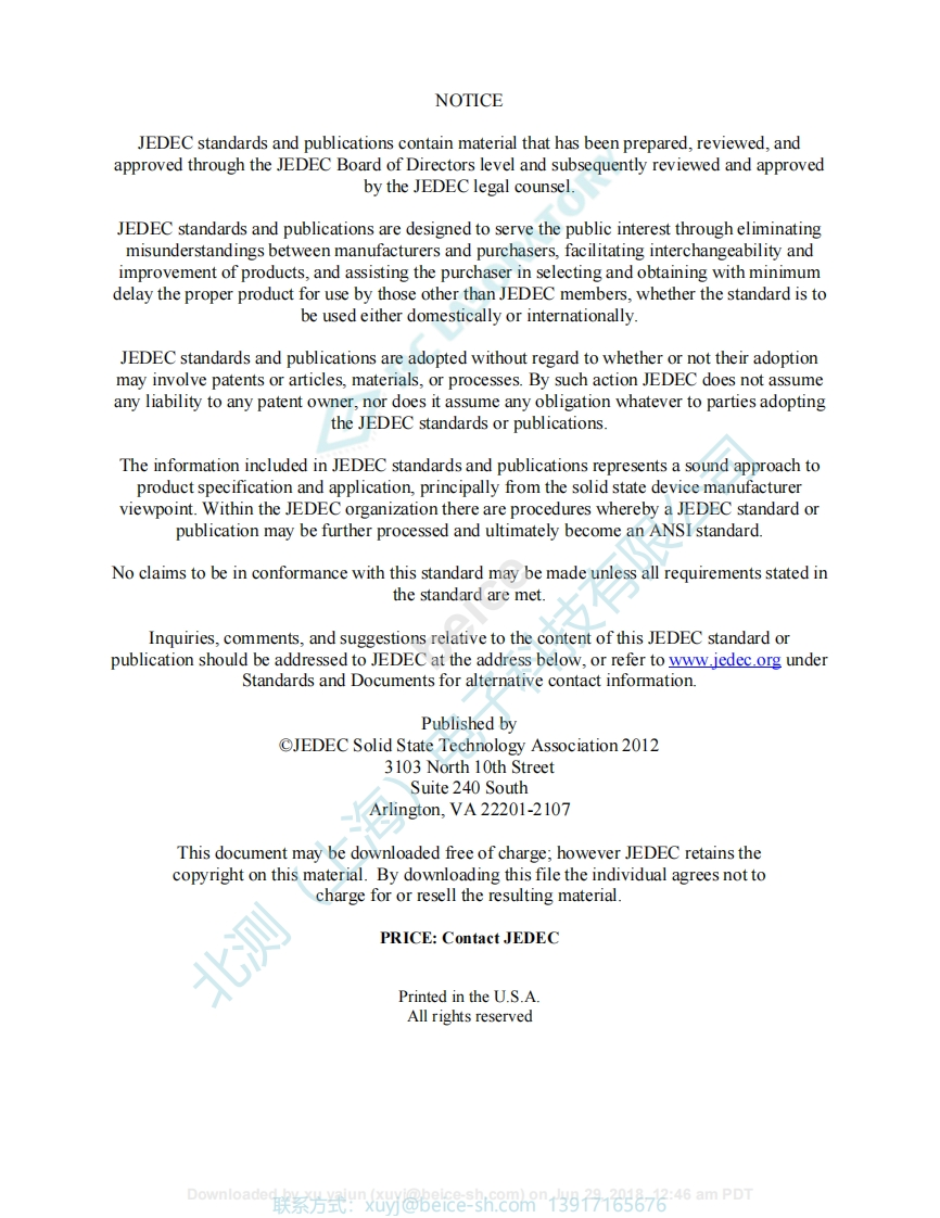 JEDECBORATORYSTANDARDMeasurement and Reporting of AlphaParticle and Terrestrial Cosmic电子科有限公司Ray-Induced Soft Errors inSemiconductor DevicesJESD89A(Revision of JESD89,August 2001)OCTOBER 2006(Reaffirmed:JANUARY 2012)JEDEC SOLID STATE TECHNOLOGY ASSOCIATIONJE五ECDownloade联系为武:j@68ee20n"39f716567646 am PDT