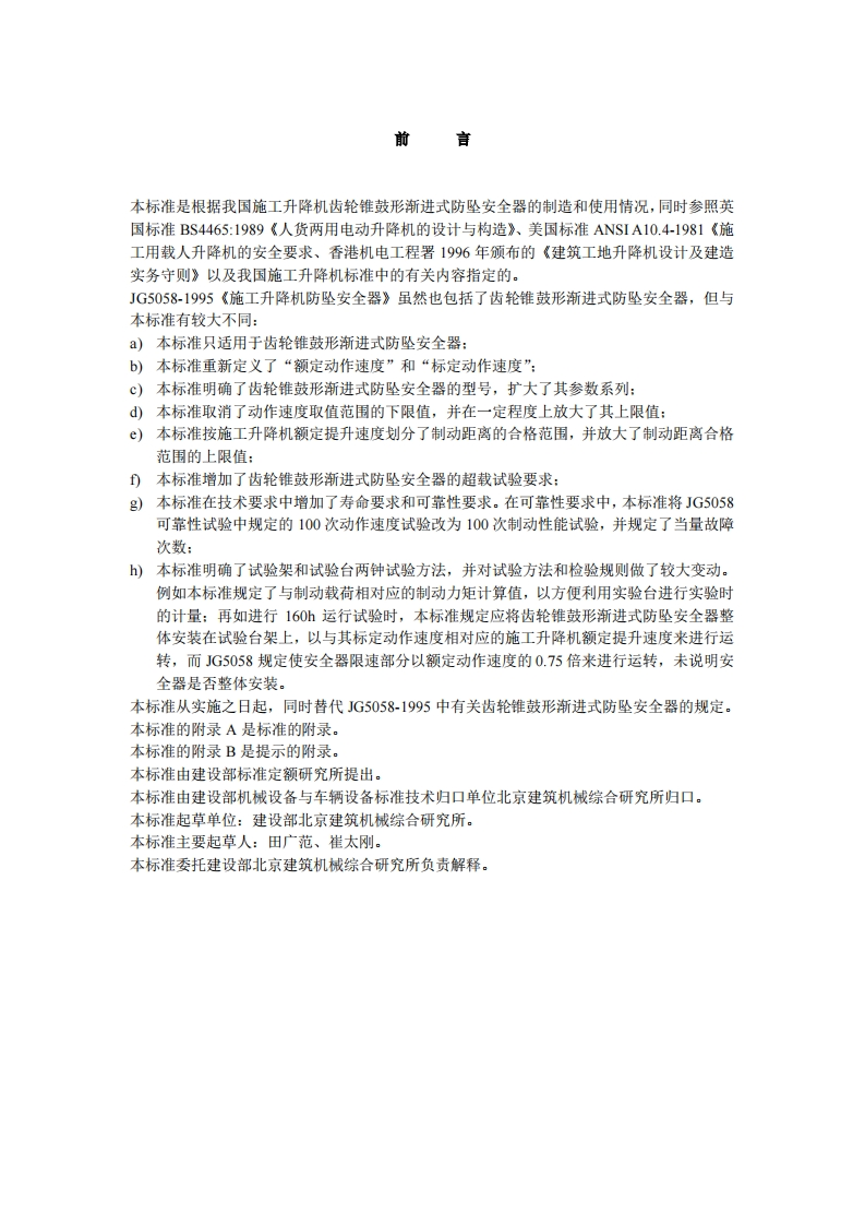 JG121-2000348072@abc4个月前发布关注私信47.19KB12页025JG121-2000此内容为付费资源,请付费后查看¥16¥23黄金会员免费钻石会员免费立即购买您当前未登录!建议登陆后购买,可保存购买订单付费资源 第1页 / 共12页 第2页 / 共12页 试读已结束,还剩10页,您可下载完整版后进行离线阅读 THE END标准规范 文本预览 中华人民共和国建筑工业行业标准施工升降机齿轮锥鼓形渐进式防坠安全器Building hoist-Pinion andcone progressive type safety deviceJG121-20002000-06-09发布2000-12-01实施中华人民共和国建设部发布 查看更多 收起部分 喜欢就支持一下吧收藏