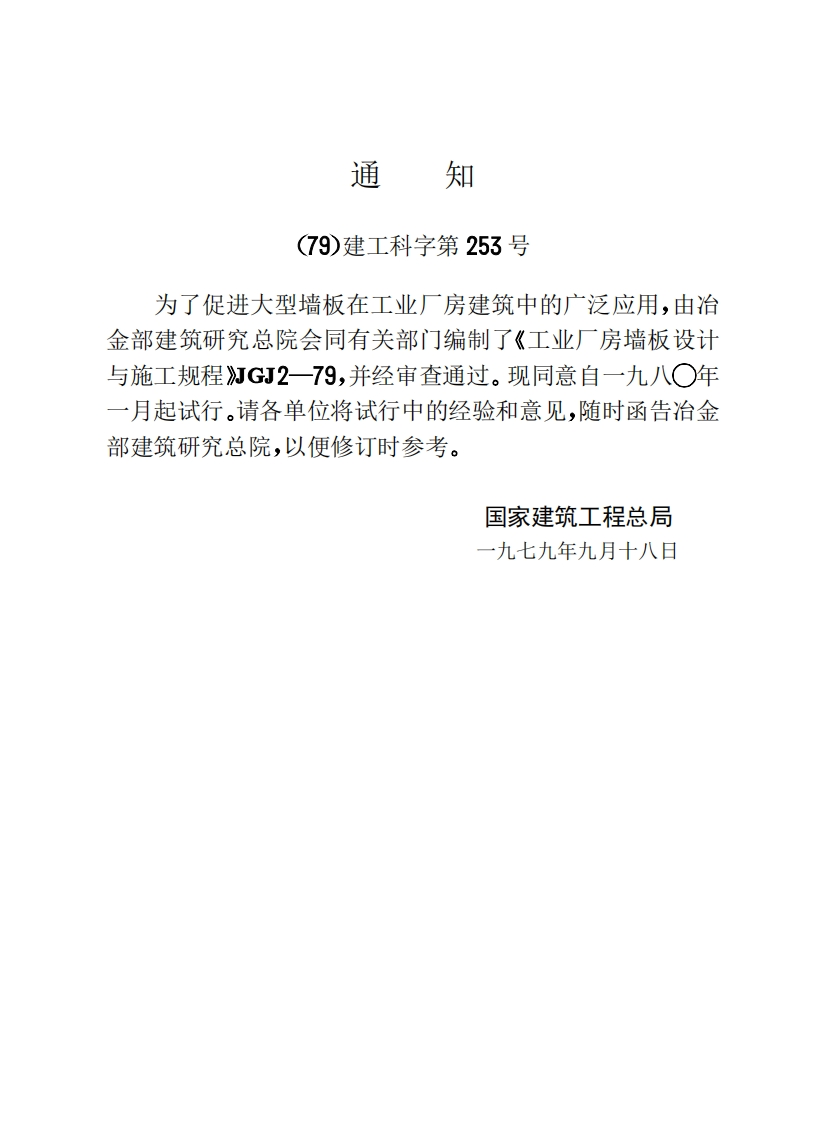 JGJ2-1979工业厂房墙板设计与施工规程348072@abc4个月前发布关注私信3.93MB91页047JGJ2-1979工业厂房墙板设计与施工规程此内容为付费资源,请付费后查看¥16¥23黄金会员免费钻石会员免费立即购买您当前未登录!建议登陆后购买,可保存购买订单付费资源 第1页 / 共91页 第2页 / 共91页 试读已结束,还剩89页,您可下载完整版后进行离线阅读 THE END标准规范 文本预览 工业厂房墙板设计与施工规程JGJ 2-79(试行)主编单位:治金部建筑研究总院北京钢铁设计研究总院批准单位:国家建筑工程总局试行日期:1980年1月1日 查看更多 收起部分 喜欢就支持一下吧收藏