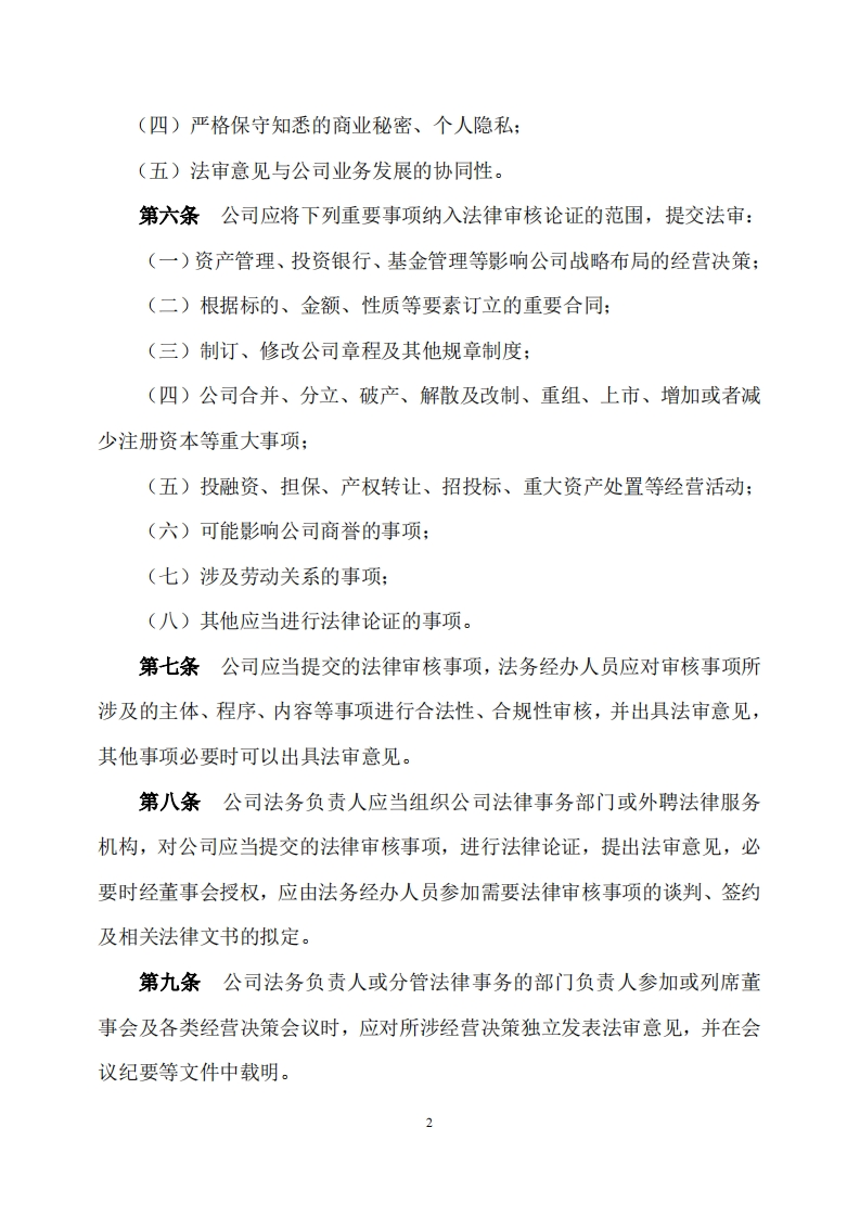 米《法审意见实施细则》雏菊机构D A I S Y I I N A N C I A L第一章总则第一条为了加强公司经营决策和经济活动的法律审核论证,推进法律风险防范机制建设,维护公司、出资人的合法权益,根据《法务工作管理制度》和《合同管理制度》等有关规定,制定本细则。第二条雏菊机构总部及各子公司、分公司、分支机构、办事处、在管基金、有限合伙(以上主体统称公司)应按照本细则的规定,执行法审意见。第三条法审意见,主要通过法律意见书的形式表述,是指公司法律事务部门或外聘法律服务机构在从事参与公司经营决策、公司法律事务过程中,就有关法律问题以红头书面文件形式向公司董事会、决策机构或主办部门提供法律依据、作出法律解释、进行法律审查、分析法律风险、提出法律建议或解决方案的法律文书,是公司法律事务部门或外聘法律服务机构对有关的法律问题发表的结论性意见。第四条公司应当建立科学、规范、独立的公司法律事务管理制度和工作流程,明确公司法律事务部门或外聘法律服务机构处理公司法律事务的权限、程序及工作内容,确保公司法律事务部门或外聘法律服务机构依法合规履行职责。第五条出具法审意见,应当遵守下列主要原则:(一)必须遵守法律法规,恪守职业道德和执业纪律;(二)尊重法务经办人员的独立性,主办部门不得干涉:(三)诚实守信、尊重基本法律事实、审慎及时;