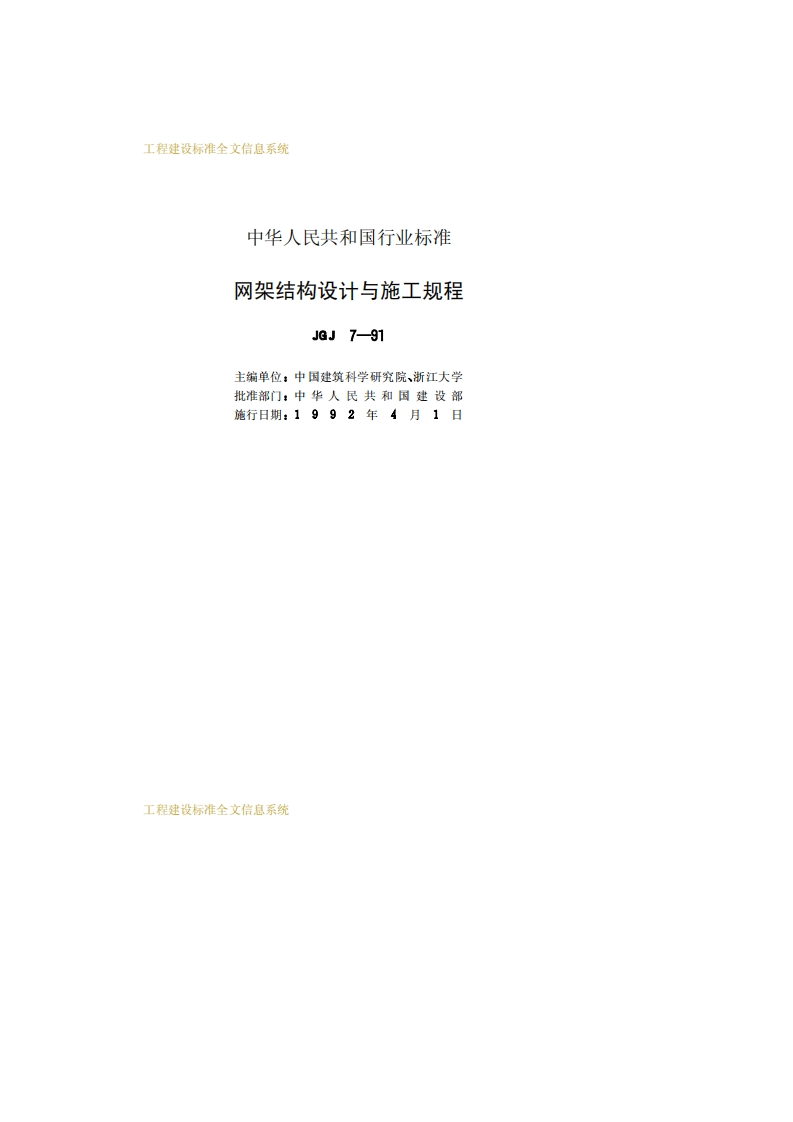 JGJ7-91网架结构设计与施工规程348072@abc4个月前发布关注私信1.65MB73页023JGJ7-91网架结构设计与施工规程此内容为付费资源,请付费后查看¥16¥23黄金会员免费钻石会员免费立即购买您当前未登录!建议登陆后购买,可保存购买订单付费资源 第1页 / 共73页 第2页 / 共73页 试读已结束,还剩71页,您可下载完整版后进行离线阅读 THE END标准规范 文本预览 工程建设标准全文信息系统中华人民共和国行业标准网架结构设计与施工规程JGJ 7-91建标1991北京工程建设标准全文信息系统 查看更多 收起部分 喜欢就支持一下吧收藏