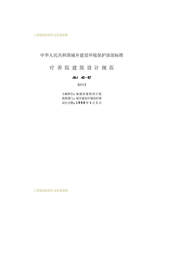 JGJ40-87疗养院建筑设计规范348072@abc4个月前发布关注私信0.39MB23页043JGJ40-87疗养院建筑设计规范此内容为付费资源,请付费后查看¥16¥23黄金会员免费钻石会员免费立即购买您当前未登录!建议登陆后购买,可保存购买订单付费资源 第1页 / 共23页 第2页 / 共23页 试读已结束,还剩21页,您可下载完整版后进行离线阅读 THE END标准规范 文本预览 工程建设标准全文信息系统中华人民共和国城乡建设环境保护部部标准疗养院建筑设计规范JGJ40-87(试行)建标1987北京工程建设标准全文信息系统 查看更多 收起部分 喜欢就支持一下吧收藏