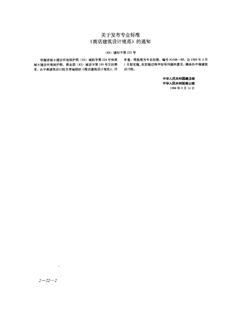 JGJ48-88商店建筑设计规范348072@abc4个月前发布关注私信0.44MB10页026JGJ48-88商店建筑设计规范此内容为付费资源,请付费后查看¥16¥23黄金会员免费钻石会员免费立即购买您当前未登录!建议登陆后购买,可保存购买订单付费资源 第1页 / 共10页 第2页 / 共10页 试读已结束,还剩8页,您可下载完整版后进行离线阅读 THE END标准规范 文本预览 中华人民共和国建设部中华人民共和国商业部标准商店建筑设计规范JGJ48-88(试行)编单位:中南建筑设计院批准部门:中华人民共和国建设部中华人民共和国商业部实行日期:】989年4月1日2—2?-1 查看更多 收起部分 喜欢就支持一下吧收藏