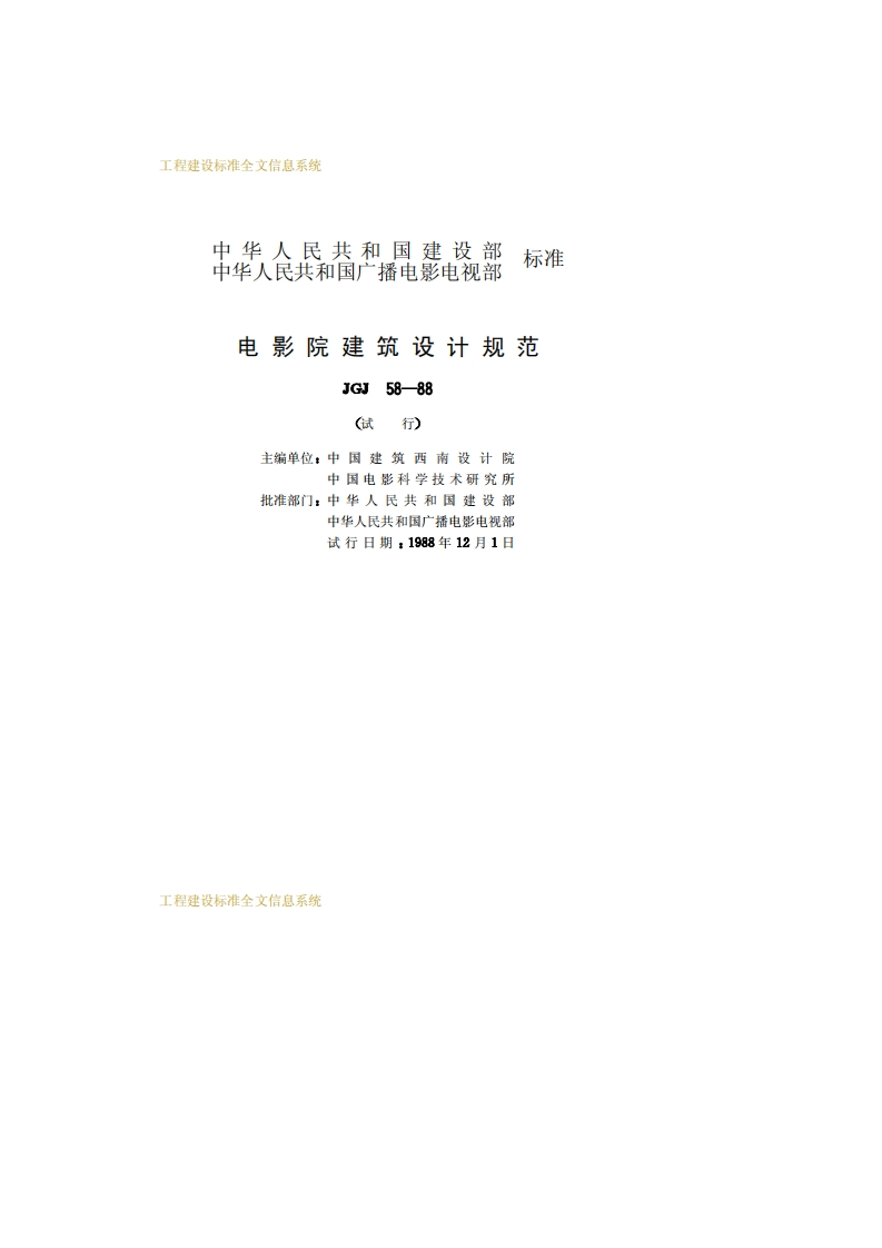 JGJ58-88电影院建筑设计规范348072@abc4个月前发布关注私信0.59MB30页022JGJ58-88电影院建筑设计规范此内容为付费资源,请付费后查看¥16¥23黄金会员免费钻石会员免费立即购买您当前未登录!建议登陆后购买,可保存购买订单付费资源 第1页 / 共30页 第2页 / 共30页 试读已结束,还剩28页,您可下载完整版后进行离线阅读 THE END标准规范 文本预览 工程建设标准全文信息系统中华人民共和国建设部标准中华人民共和国广播电影电视部电影院建筑设计规范JGJ58-88(试行)建标1988北京工程建设标准全文信息系统 查看更多 收起部分 喜欢就支持一下吧收藏