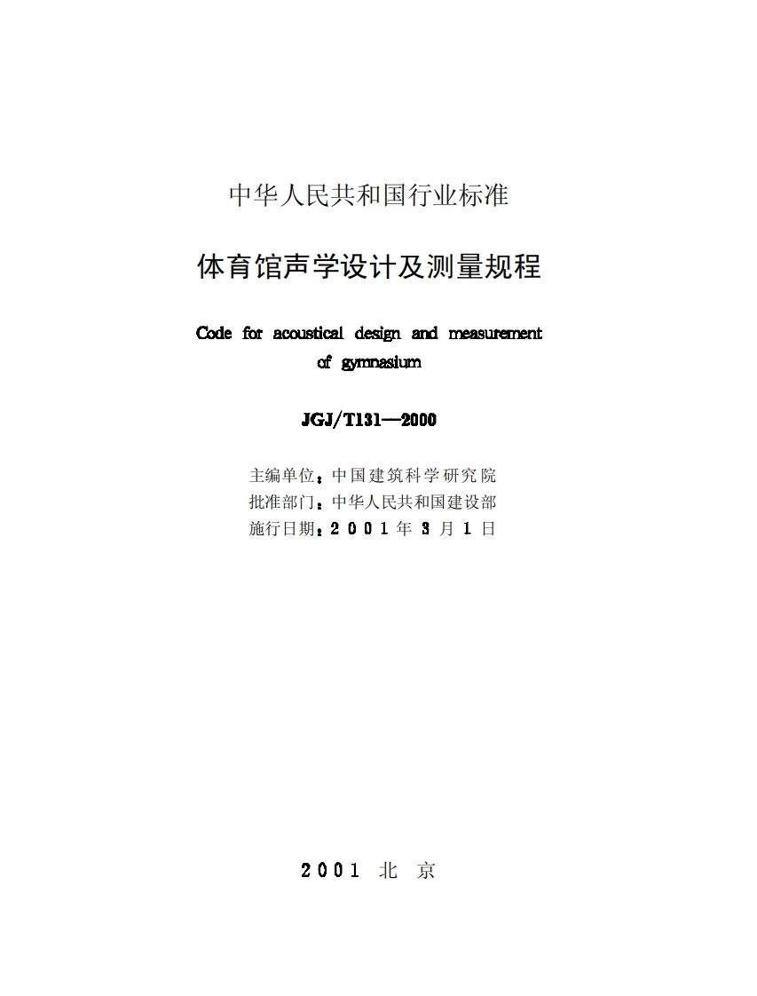 JGJ131T-2000体育馆声学设计及测量规程348072@abc4个月前发布关注私信0.41MB21页031JGJ131T-2000体育馆声学设计及测量规程此内容为付费资源,请付费后查看¥16¥23黄金会员免费钻石会员免费立即购买您当前未登录!建议登陆后购买,可保存购买订单付费资源 第1页 / 共21页 第2页 / 共21页 试读已结束,还剩19页,您可下载完整版后进行离线阅读 THE END标准规范 文本预览 中华人民共和国行业标准体育馆声学设计及测量规程Code for acoustical design and measurementof gymnasiumJGJ/T131一2000J42-20002001北京 查看更多 收起部分 喜欢就支持一下吧收藏