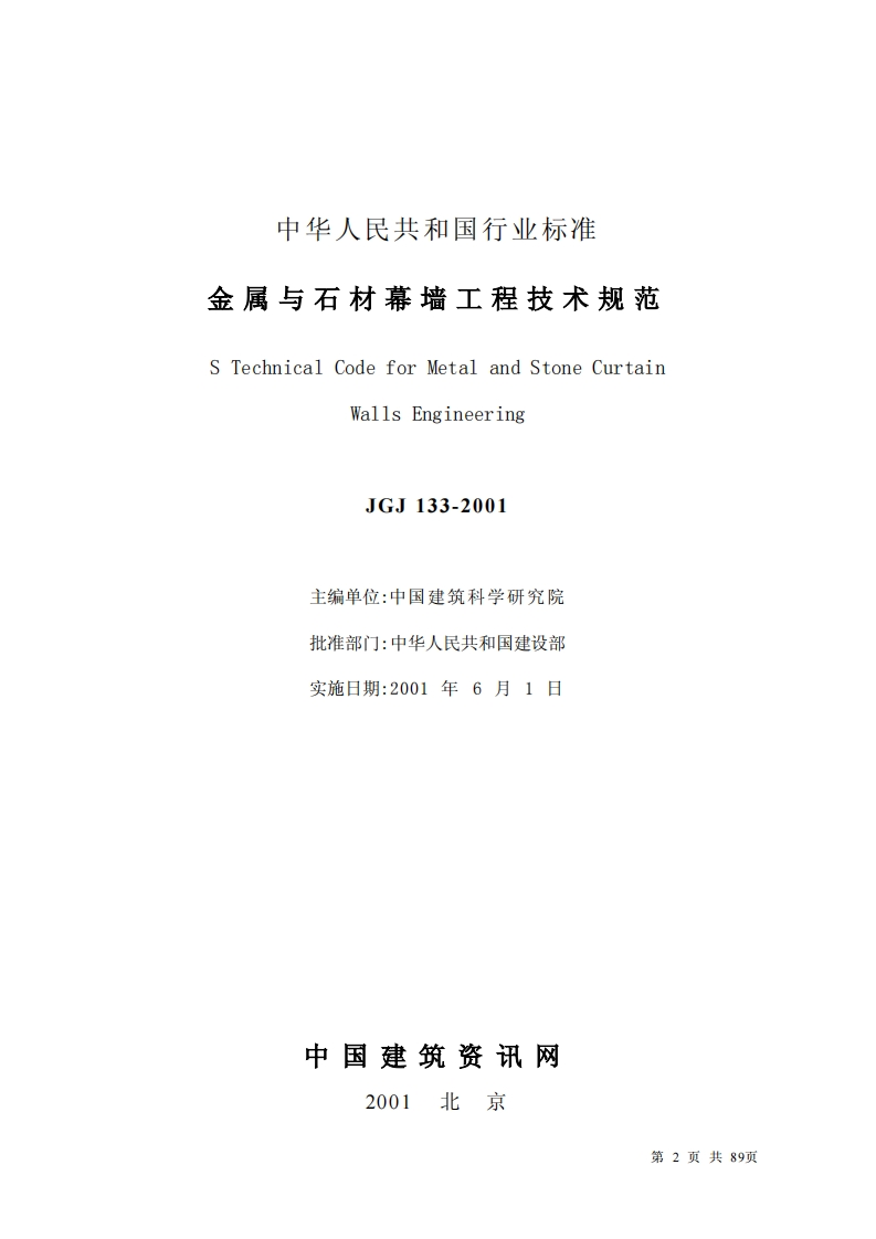 JGJ133-2001金属与石材幕墙工程技术规范348072@abc4个月前发布关注私信1.21MB122页050JGJ133-2001金属与石材幕墙工程技术规范此内容为付费资源,请付费后查看¥16¥23黄金会员免费钻石会员免费立即购买您当前未登录!建议登陆后购买,可保存购买订单付费资源 第1页 / 共122页 第2页 / 共122页 试读已结束,还剩120页,您可下载完整版后进行离线阅读 THE END标准规范 文本预览 中华人民共和国行业标准金属与石材幕墙工程技术规范Technical Code for Metal and Stone CurtainWalls EngineeringJGJ133-2001J113-20012001北京第1页共89页 查看更多 收起部分 喜欢就支持一下吧收藏