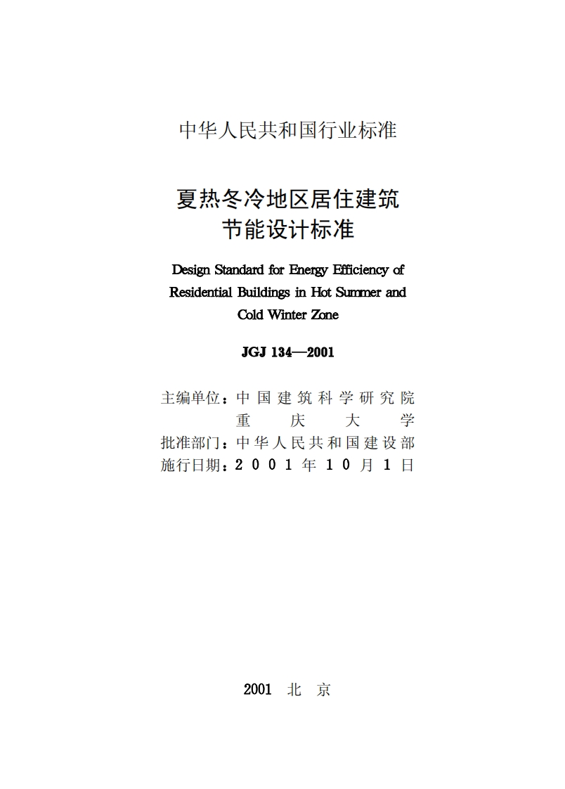 JGJ134-2001夏热冬冷地区居住建筑节能设计标准348072@abc4个月前发布关注私信0.73MB19页041JGJ134-2001夏热冬冷地区居住建筑节能设计标准此内容为付费资源,请付费后查看¥16¥23黄金会员免费钻石会员免费立即购买您当前未登录!建议登陆后购买,可保存购买订单付费资源 第1页 / 共19页 第2页 / 共19页 试读已结束,还剩17页,您可下载完整版后进行离线阅读 THE END标准规范 文本预览 中华人民共和国行业标准夏热冬冷地区居住建筑节能设计标准Design Standard for Energy Efficiency ofResidential Buildings in Hot Summer andCold Winter ZoneJGJ134-2001J116-20012001北京 查看更多 收起部分 喜欢就支持一下吧收藏