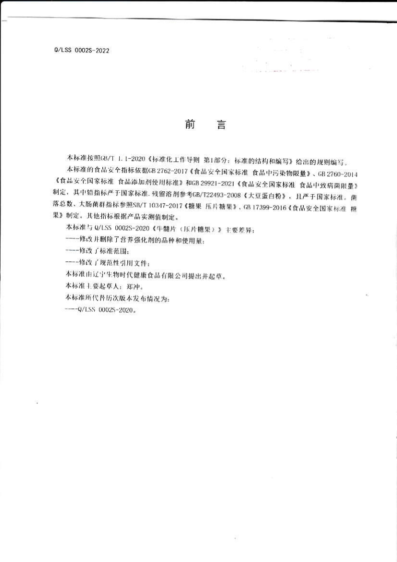 21040076S-2022牛髓片(压片糖果)(辽宁生物时代健康食品有限公司)348072@abc5个月前发布关注私信0.59MB7页03621040076S-2022牛髓片(压片糖果)(辽宁生物时代健康食品有限公司)此内容为付费资源,请付费后查看¥17¥22黄金会员免费钻石会员免费立即购买您当前未登录!建议登陆后购买,可保存购买订单付费资源 第1页 / 共7页 第2页 / 共7页 试读已结束,还剩5页,您可下载完整版后进行离线阅读 THE END标准规范 文本预览 宁雪鞭前食品实全金业经案9076S-322n40p0OLSS辽宁生物时代健康食品有限公司企业标准Q/LSS0002S-2022代替Q/LSS0002S-2020牛髓片(压片糖果)2022-11-3发布2022-12-3实施辽宁生物时代健康食品有限公司发布 查看更多 收起部分 喜欢就支持一下吧收藏