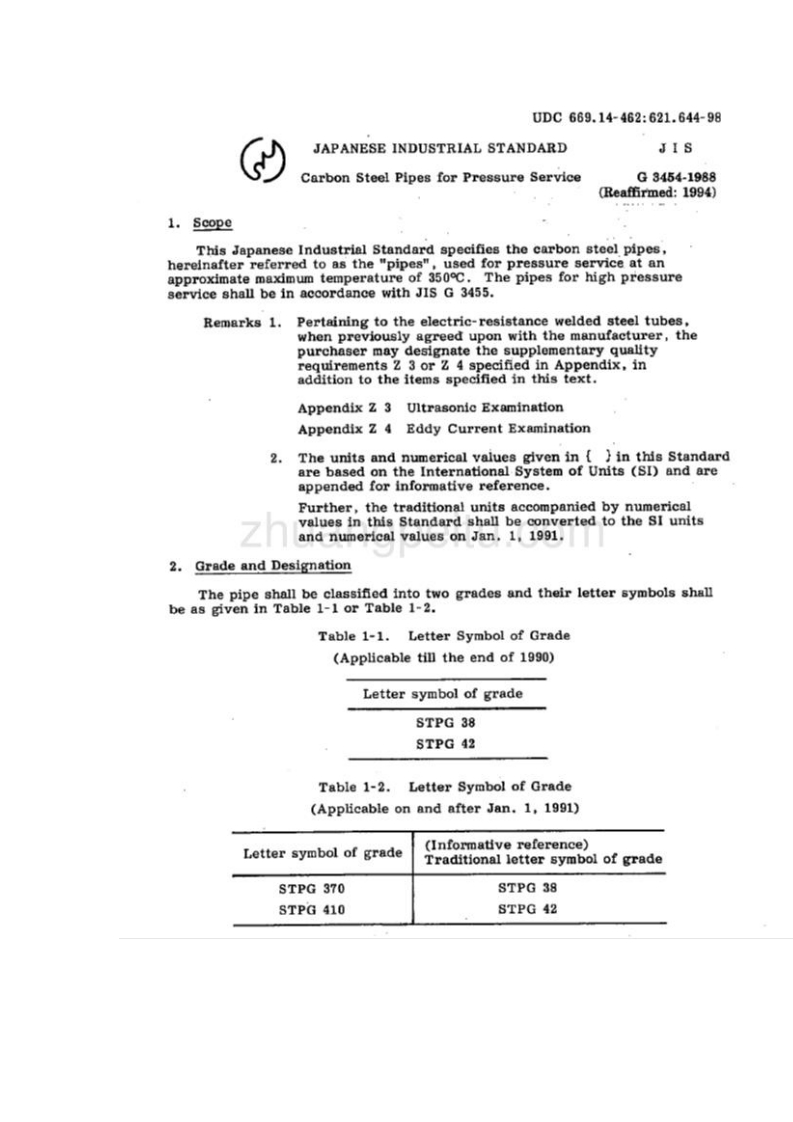 JIS-G3454-1988-英文版-压力管路用碳素348072@abc4个月前发布关注私信1.27MB16页044JIS-G3454-1988-英文版-压力管路用碳素此内容为付费资源,请付费后查看¥16¥23黄金会员免费钻石会员免费立即购买您当前未登录!建议登陆后购买,可保存购买订单付费资源 第1页 / 共16页 第2页 / 共16页 试读已结束,还剩14页,您可下载完整版后进行离线阅读 THE END标准规范 文本预览 J1SG3454-1988英文版压力管路用碳素UDC669.14-462:621.644-98JISJAPANESE INDUSTRIAL STANDARDCarbon Steel Pipes forPressure ServiceZhJIS G 3454-mcomTranslated and PublishedbyJapaneseStandardsAssociationPrinted in Japan10s 查看更多 收起部分 喜欢就支持一下吧收藏