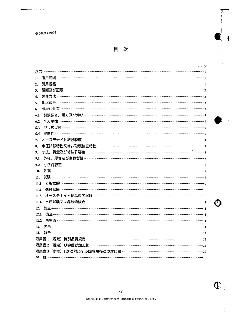 G3463:2006ま元州吉二の規格:,工業標準化法第14条也上2℃準用寸第12条第1項)规定仁基老,社厨法人日本铁铜速盟(SF)办,工業標準原案交具L℃日本工業规格花改正寸ベ老上)申出5南),日本工業標準稠查会)審藏花轻℃,轻济座業大臣做正L大日本工莱規格℃尚马。C九仁上2℃,JISG3463:1994休改正苍九,Cの规格杞置登换之6九马。改正仁当大2℃体,日本工業規格上国際想格之②对比,国際規格仁一致L大日本工莱規格)作成及心日本工業规格花基礎L大国際规格原案の提案花容易寸石大动仁,IS093294:1997,Seamless steel tubes forpressure purposes-Technical delivery conditions-Part 4:Austenitic stainless steels ISO 9330-6:1997,Weldedsteel tubes for pressure purposes-Technical delivery conditions-Part 6:Longitudinally welded austenitic stainlesssteeltubes花基礎上LT用大。二の规格)一部,技術的性質花专一特許榷,出願公開後の特許出顾,美用新案権,又仗出顫公開後)尖用新案登绿出顾仁抵触才名可能性药石二上仁注意花唤起士多。经济座業大臣及心日本工業標弹刹查会住,二)上方本技循的性質花名一特許権,出願公開後)特許出原,奥用新案椎,又住出丽公開後)类用新案登绿出顺忙办加力弓確認忙O℃,費任交色大安。JISG3463二注,次七示寸附属書¥志石。附属营1(規定)特别品贷規定附属善2(規定)U字曲伊加工管附属番3(参考)JS上对心寸石国際規格上の对比表0(1)著作推法化上力氟断℃功檀製。忘戴等仕禁止老九工书)主亨。