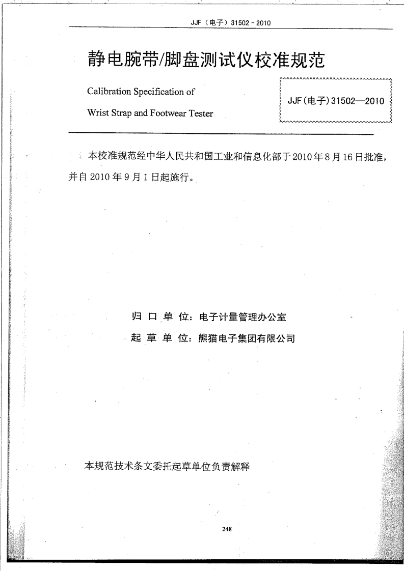 JJF(电子)31502-2010静电腕带/脚盘测试仪校准规范348072@abc4个月前发布关注私信0.40MB9页041JJF(电子)31502-2010静电腕带/脚盘测试仪校准规范此内容为付费资源,请付费后查看¥16¥23黄金会员免费钻石会员免费立即购买您当前未登录!建议登陆后购买,可保存购买订单付费资源 第1页 / 共9页 第2页 / 共9页 试读已结束,还剩7页,您可下载完整版后进行离线阅读 THE END标准规范 文本预览 JJF(电子)中华人民共和国工业和信息化部电子计量校准规范JJF(电子)31502-2010静电腕带/脚盘测试仪Wrist Strap and Footwear Tester2010年08月16日发布2010年09月01日实施中华人民共和国工业和信息化部发布247 查看更多 收起部分 喜欢就支持一下吧收藏