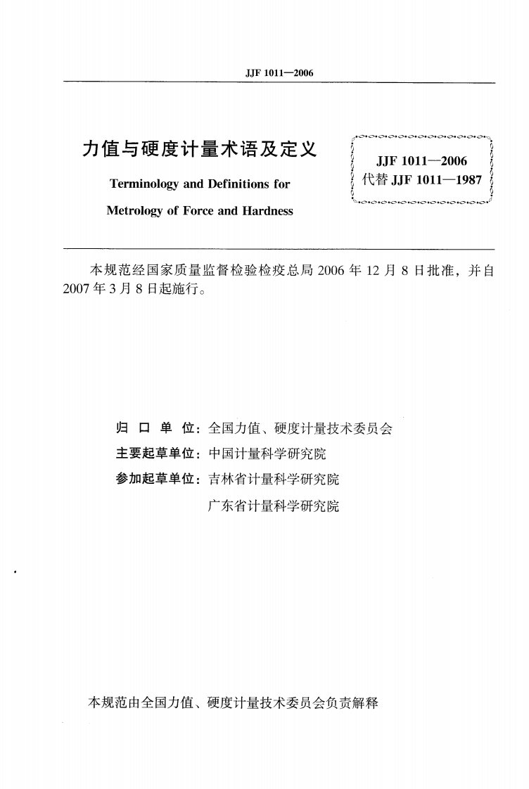 JJF1011-2006力值与硬度计量术语及定义348072@abc4个月前发布关注私信3.51MB79页043JJF1011-2006力值与硬度计量术语及定义此内容为付费资源,请付费后查看¥16¥23黄金会员免费钻石会员免费立即购买您当前未登录!建议登陆后购买,可保存购买订单付费资源 第1页 / 共79页 第2页 / 共79页 试读已结束,还剩77页,您可下载完整版后进行离线阅读 THE END标准规范 文本预览 力-4-17可可F中华人民共和国国家计量技术规范JJF1011一2006力值与硬度计量术语及定义Terminology and Definitions for Metrology of Force and Hardness2006-12-08发布2007-03-08实施国家质量监督检验检疫总局发布 查看更多 收起部分 喜欢就支持一下吧收藏