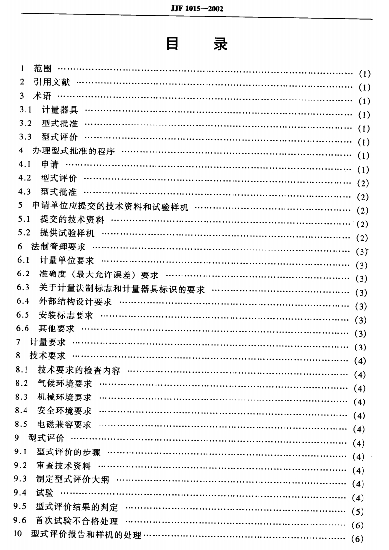 JJF1015-2002计量器具型式评价和型式批准通用规范JJF1015-2002代替JJF1015一1990General Norm for Pattern Evaluation andPattern Approval of Measuring Instruments本技术规范经国家质量监督检验检疫总局于2002年05月16日批准,并自2002年08月01日起施行。归口单位:全国法制计量管理计量技术委员会起草单位:国家质量监督检验检疫总局计量司辽宁省质量技术监督局本规范由国家质量监督检验检疫总局计量司负责解释