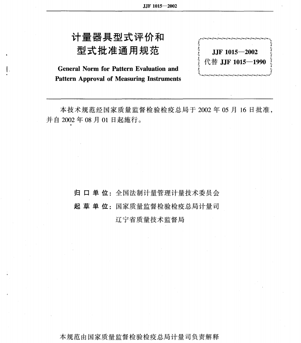 JJF1015-2002计量器具型式评价和型式批准通用规范348072@abc4个月前发布关注私信0.75MB31页037JJF1015-2002计量器具型式评价和型式批准通用规范此内容为付费资源,请付费后查看¥16¥23黄金会员免费钻石会员免费立即购买您当前未登录!建议登陆后购买,可保存购买订单付费资源 第1页 / 共31页 第2页 / 共31页 试读已结束,还剩29页,您可下载完整版后进行离线阅读 THE END标准规范 文本预览 可可月中华人民共和国国家计量技术规范JJF1015一2002计量器具型式评价和型式批准通用规范General Norm for Pattern Evaluationand Pattern Approval of Measuring Instruments2002-05-16发布2002-08-01实施国家质量监督检验检疫总局发布 查看更多 收起部分 喜欢就支持一下吧收藏