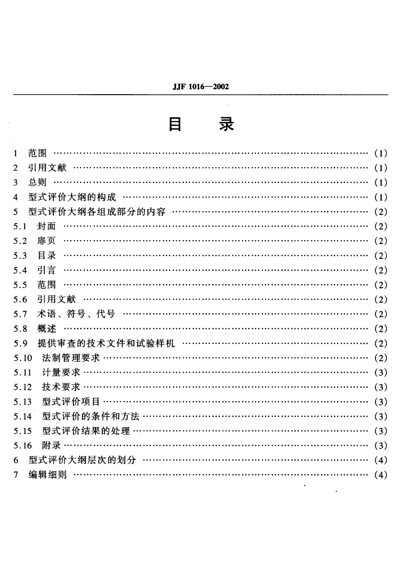 JJF1016-2002计量器具型式评价大纲编写导则JJF1016-2002The Rules for Drafting Program of Pattern代替JJF1016一1990Evaluation of Measuring Instruments本规范经国家质量监督检验检疫总局于2002年05月16日批准,并自2002年08月01日起施行。归口单位:全国法制计量管理计量技术委员会起草单位:国家质量监督检验检疫总局计量司辽宁省质量技术监督局本规范由国家质量监督检验检疫总局计量司负责解释