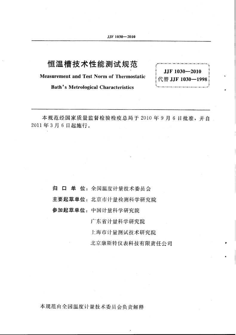 JJF1030-2010恒温槽技术性能测试规范348072@abc4个月前发布关注私信0.78MB12页045JJF1030-2010恒温槽技术性能测试规范此内容为付费资源,请付费后查看¥16¥23黄金会员免费钻石会员免费立即购买您当前未登录!建议登陆后购买,可保存购买订单付费资源 第1页 / 共12页 第2页 / 共12页 试读已结束,还剩10页,您可下载完整版后进行离线阅读 THE END标准规范 文本预览 可可F中华人民共和国国家计量技术规范JJF1030-2010恒温槽技术性能测试规范Measurement and Test Norm of Thermostatic Bath'sMetrological Characteristics2010-09-06发布2011-03-06实施国家质量监督检验检疫总局发布 查看更多 收起部分 喜欢就支持一下吧收藏