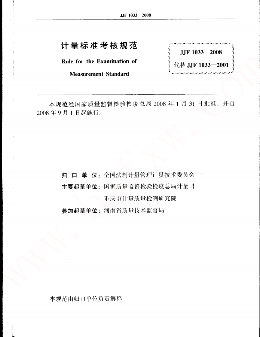 JJF1033-2008计量标准考核规范348072@abc4个月前发布关注私信1.80MB71页031JJF1033-2008计量标准考核规范此内容为付费资源,请付费后查看¥16¥23黄金会员免费钻石会员免费立即购买您当前未登录!建议登陆后购买,可保存购买订单付费资源 第1页 / 共71页 第2页 / 共71页 试读已结束,还剩69页,您可下载完整版后进行离线阅读 THE END标准规范 文本预览 中华人民共和国国家计量技术规范JJF1033一2008计量标准考核规范Rule for the Examination of Measurement Standard2008-01-31发布0901实国家质量监督检验检疫总局发布 查看更多 收起部分 喜欢就支持一下吧收藏