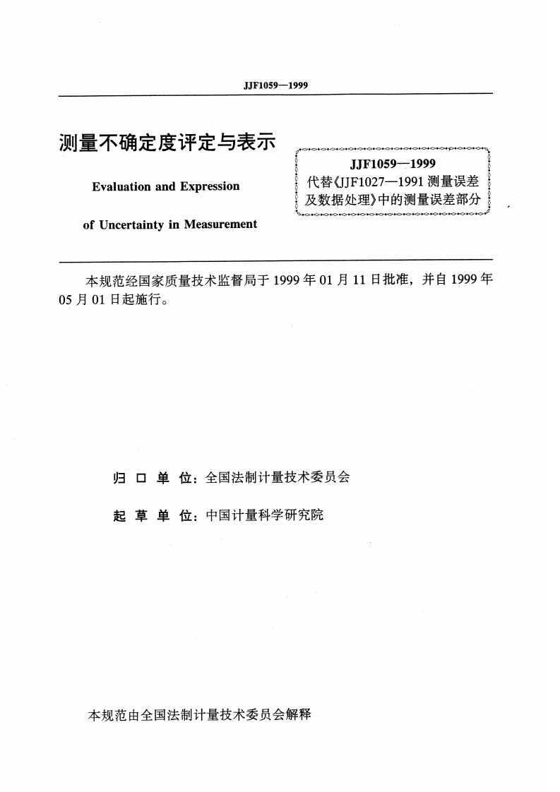 JJF1059-1999测量不确定度评定与表示348072@abc4个月前发布关注私信6.57MB38页026JJF1059-1999测量不确定度评定与表示此内容为付费资源,请付费后查看¥16¥23黄金会员免费钻石会员免费立即购买您当前未登录!建议登陆后购买,可保存购买订单付费资源 第1页 / 共38页 第2页 / 共38页 试读已结束,还剩36页,您可下载完整版后进行离线阅读 THE END标准规范 文本预览 可F中华人民共和国国家计量技术规范JJF1059-1999测量不确定度评定与表示Evaluation and Expressionof Uncertainty in Measurement1999-01-11发布1999-05-01实施国家质量技术监督局发布 查看更多 收起部分 喜欢就支持一下吧收藏