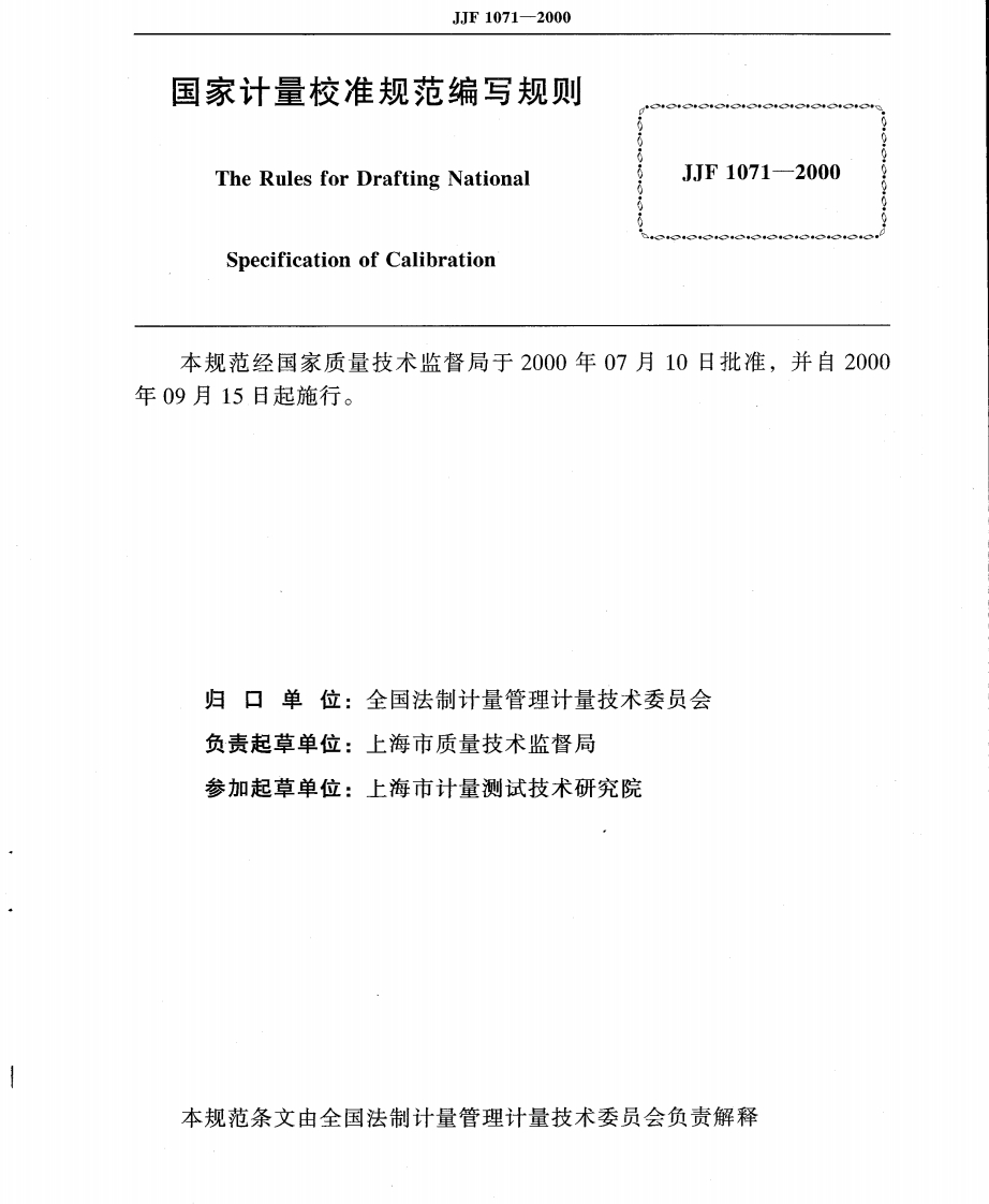 JJF1071-2000国家计量校准规范编写规则348072@abc4个月前发布关注私信0.36MB16页049JJF1071-2000国家计量校准规范编写规则此内容为付费资源,请付费后查看¥16¥23黄金会员免费钻石会员免费立即购买您当前未登录!建议登陆后购买,可保存购买订单付费资源 第1页 / 共16页 第2页 / 共16页 试读已结束,还剩14页,您可下载完整版后进行离线阅读 THE END标准规范 文本预览 可可作中华人民共和国国家计量技术规范JJF1071一2000国家计量校准规范编写规则The Rules for Drafting National Specification of Calibration2000-07-10发布2000-09-15实施国家质量技术监督局发布 查看更多 收起部分 喜欢就支持一下吧收藏