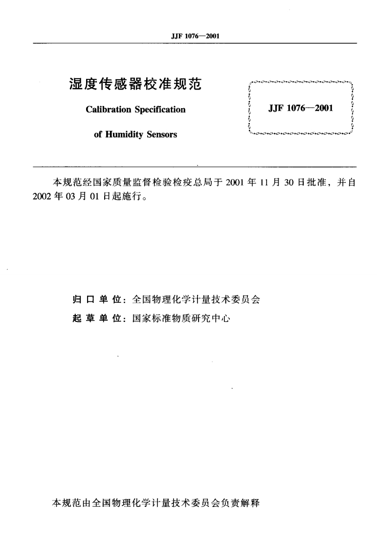 JJF1076-2001湿度传感器校准规范(1)348072@abc4个月前发布关注私信0.19MB12页025JJF1076-2001湿度传感器校准规范(1)此内容为付费资源,请付费后查看¥16¥23黄金会员免费钻石会员免费立即购买您当前未登录!建议登陆后购买,可保存购买订单付费资源 第1页 / 共12页 第2页 / 共12页 试读已结束,还剩10页,您可下载完整版后进行离线阅读 THE END标准规范 文本预览 可可月中华人民共和国国家计量技术规范JJF1076一2001湿度传感器校准规范Calibration Specification of Humidity Sensors2001-11-30发布2002-03-01实施国家质量监督检验检疫总局发布 查看更多 收起部分 喜欢就支持一下吧收藏