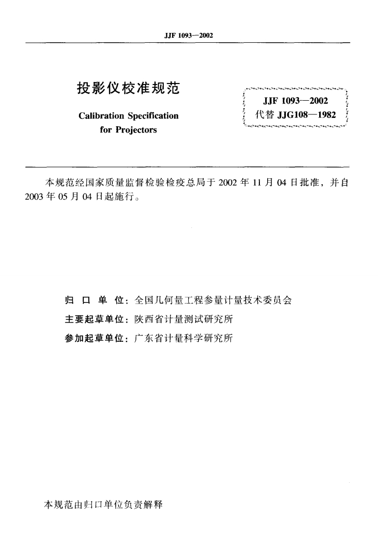 JJF1093-2002投影仪校准规范348072@abc4个月前发布关注私信0.92MB16页035JJF1093-2002投影仪校准规范此内容为付费资源,请付费后查看¥16¥23黄金会员免费钻石会员免费立即购买您当前未登录!建议登陆后购买,可保存购买订单付费资源 第1页 / 共16页 第2页 / 共16页 试读已结束,还剩14页,您可下载完整版后进行离线阅读 THE END标准规范 文本预览 中华人民共和国国家计量技术规范JJF1093-2002投影仪校准规范Calibration Specification for Projectors2002-11-04发布2003-05-04实施国家质量监督检验检疫总局发布 查看更多 收起部分 喜欢就支持一下吧收藏