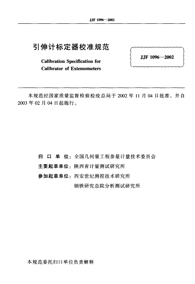 JJF1096-2002引伸計标定器校准规范-副本348072@abc4个月前发布关注私信0.46MB18页043JJF1096-2002引伸計标定器校准规范-副本此内容为付费资源,请付费后查看¥16¥23黄金会员免费钻石会员免费立即购买您当前未登录!建议登陆后购买,可保存购买订单付费资源 第1页 / 共18页 第2页 / 共18页 试读已结束,还剩16页,您可下载完整版后进行离线阅读 THE END标准规范 文本预览 甲中华人民共和国国家计量技术规范JJF1096-2002引伸计标定器校准规范Calibration Specification for Calibrator of Extensometers2002-11-04发布2003-02-04实施国家质量监督检验检疫总局发布 查看更多 收起部分 喜欢就支持一下吧收藏